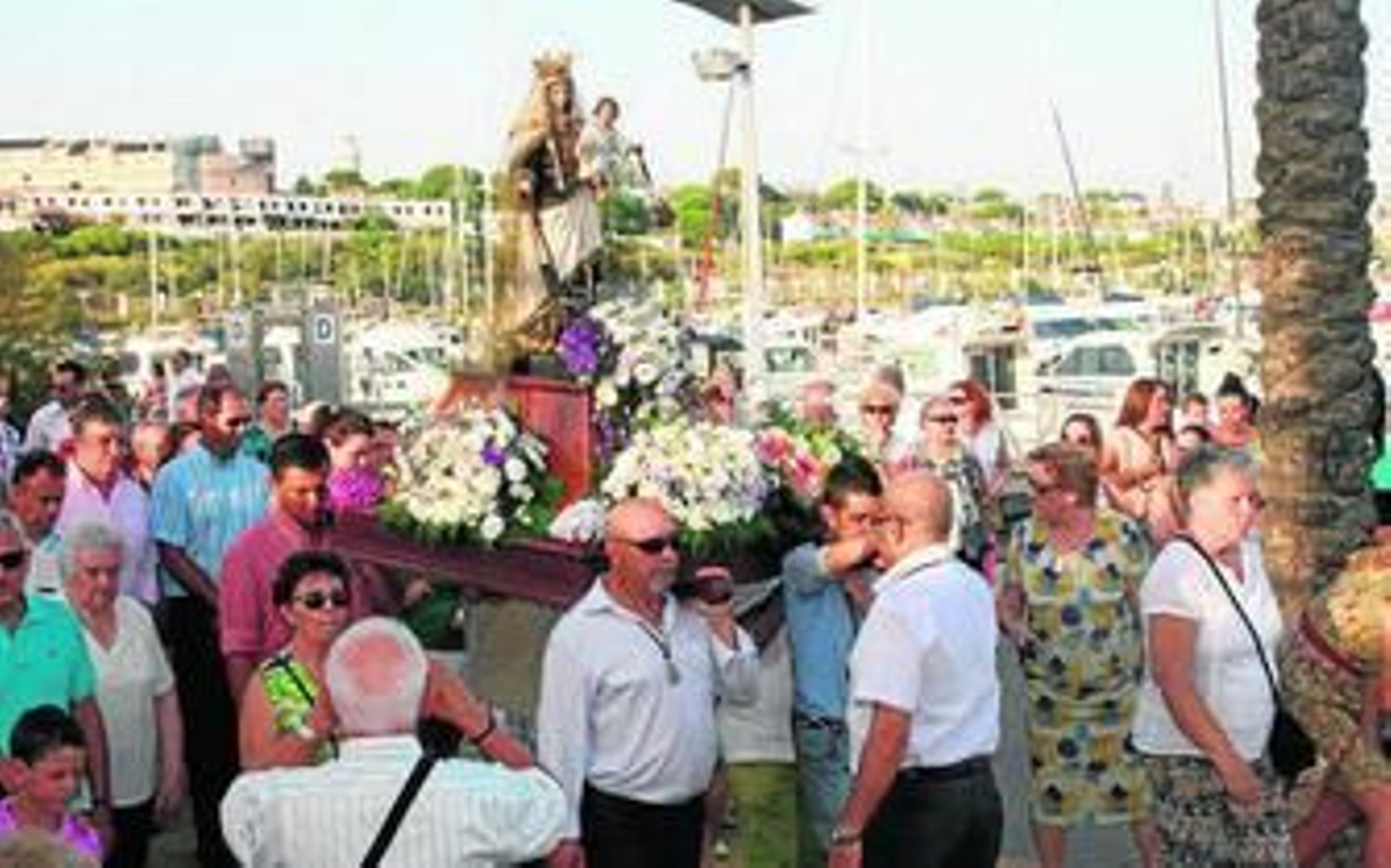 Los actos religiosos en la playa lepera se iniciaron con un Rosario de la Aurora a las siete de la mañana, para proseguir con la salida de la Virgen en barco a las 11:00. Ya por la tarde, a las 20.00, tuvo lugar una misa en honor de la Patrona de los marineros en la capilla, tras la cual se llevó a cabo la salida procesional por las principales calles del enclave turístico.