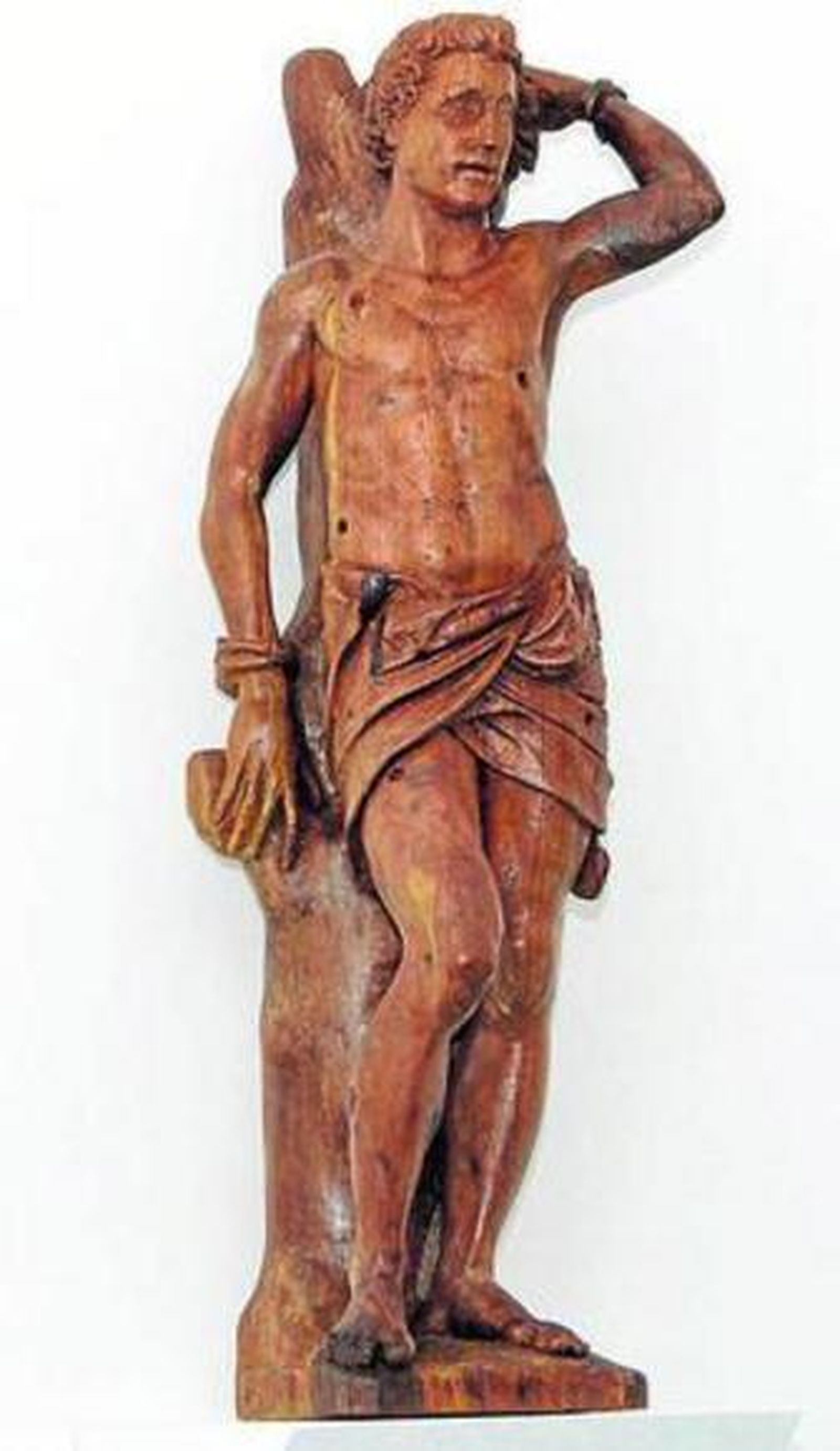 Tras dejar tan limpia la escultura no se aprecian las huellas de los muchos trozos de su rotura como debiera evidenciarse. Se cambia algo la postura del brazo izquierdo que es el que tiene levantado, rectificando para ello el árbol. Momificada queda ya en el Museo sin valor devocional.