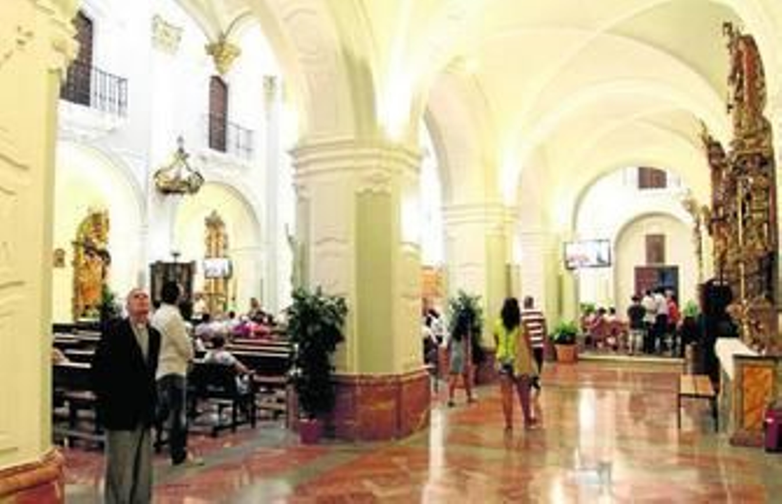 De entrada, la dignificación del edificio es evidente. El interior es ahora propio de una iglesia catedral, destacando sus elementos arquitectónicos singulares, que también los hay en la de Huelva. Las naves laterales tienen ahora mayor presencia, incorporadas a la actividad con sus propias luminarias, pero también con el realce de los retablos ubicados en ellos.