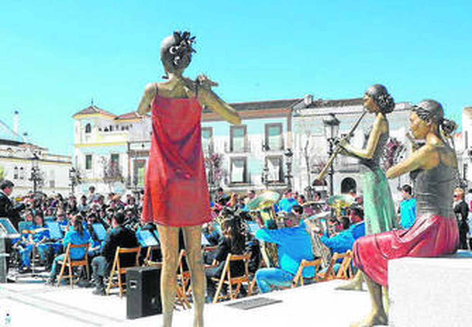 El arte por bandera, la música como justificación y la escultura como mejor reflejo. La Plaza Marqués de Aracena se convirtió el domingo en una auténtica fiesta en torno a la música. El motivo de tanto alboroto fue la inauguración del conjunto escultórico de Pepe Antonio Márquez en honor a la tradición musical, acto que reunió a numerosas personas en la céntrica plaza y al que se sumó la Banda Municipal de Música de Aracena. Las esculturas representan a tres jóvenes, cada una de ellas tocando un instrumento.