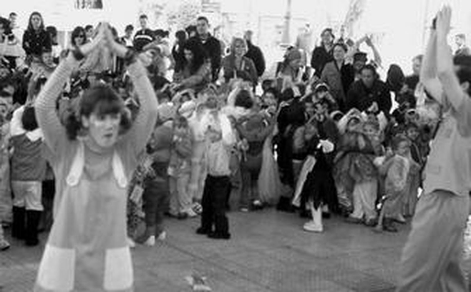 El carnaval se vive desde la escuela. Los niños fueron ayer los auténticos protagonistas del carnaval de calle. Unos trescientos escolares procedentes de tres colegios de la capital onubense: Las Salinas, Salesianos e Hispanidad participaron activamente en la fiesta carnavalera organizada por la Plataforma 'Huelva tiene carnaval' y la Federación Onubense de Peñas y Agrupaciones de Carnaval (Fopac) en la carpa de la plaza de la Merced.