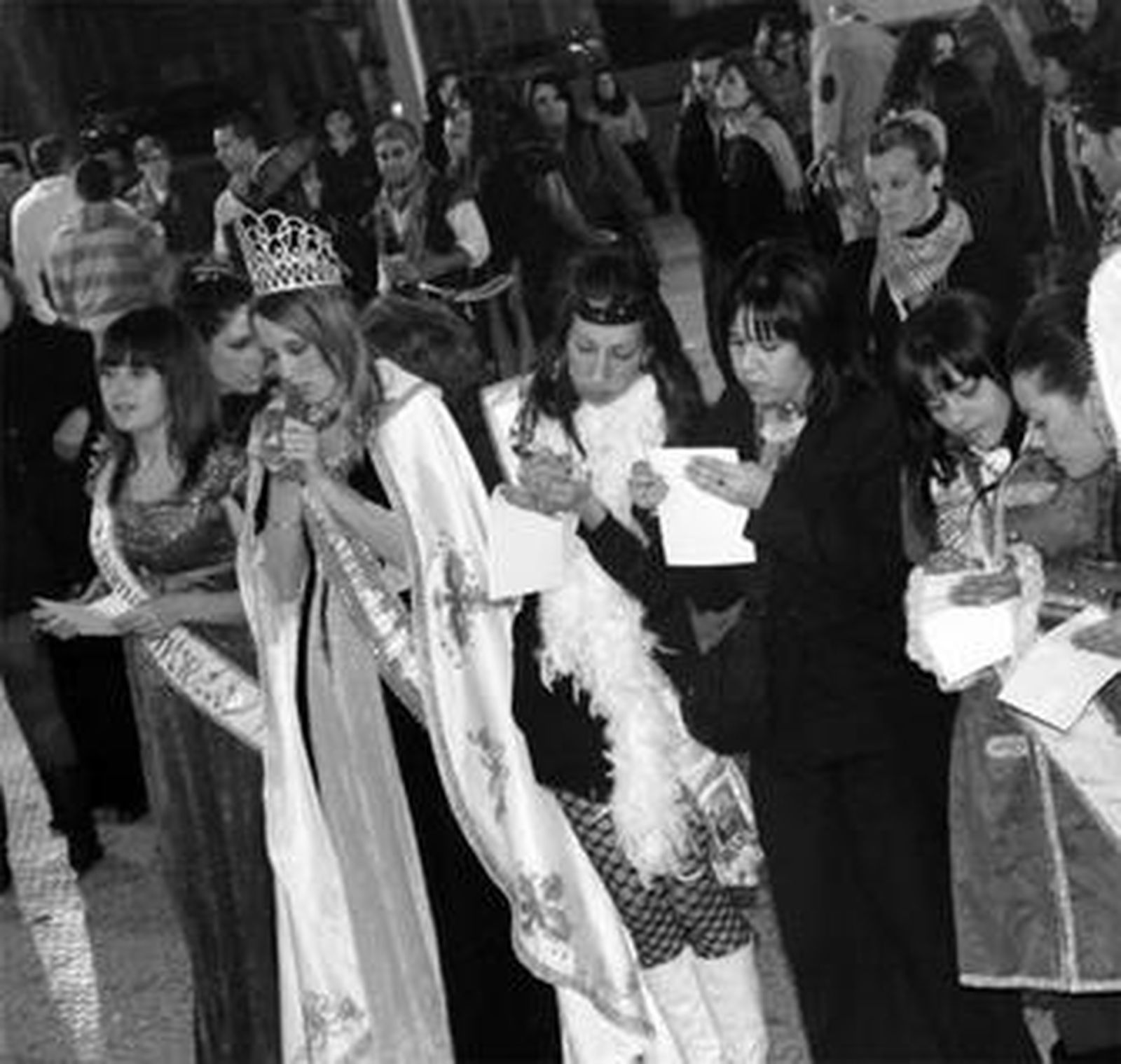 La primera en actuar fue el cuarteto 'Los colgaos'; al que siguieron 'Los empresarios de la otra orilla'; 'Tráete pan que carne no va a fartar'; la chirigota callejera, que ofreció al público una completa actuación, y 'Los viudos alegres. Esta última murga reconoció que no tenía pasodoble para la choquera pero los componentes de la agrupación le dedicaron a ella y a las damas todo su repertorio.