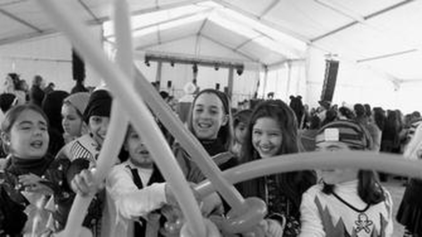 Por un día los escolares dejaron las aulas para disfrutar de lleno de las carnestolendas onubenses, cambiaron los libros por disfraces y el patio del colegio por una carpa con música, maquillaje de fantasía, globoflexia y castillos hinchables.