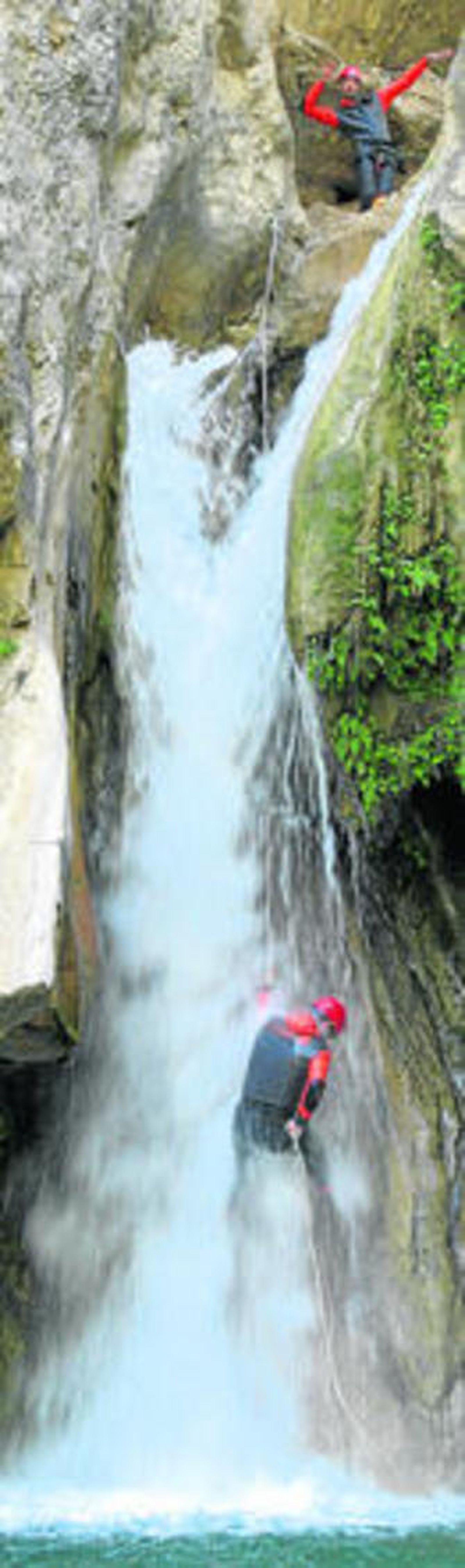 El descenso de cañones es la actividad que más interés despierta y también la más peligrosa. Se realiza en Río Verde porque tiene caudal todo el año, "aunque la mejor época es a partir de Semana Santa, cuando empieza el buen tiempo", aclara Nieves. "Cuando alguien se enfrenta a este tipo de retos en los que hay que lanzarse desde alturas de cinco metros, se ponen un poco nerviosos", comenta el coordinador de las actividades, Kei Fung.