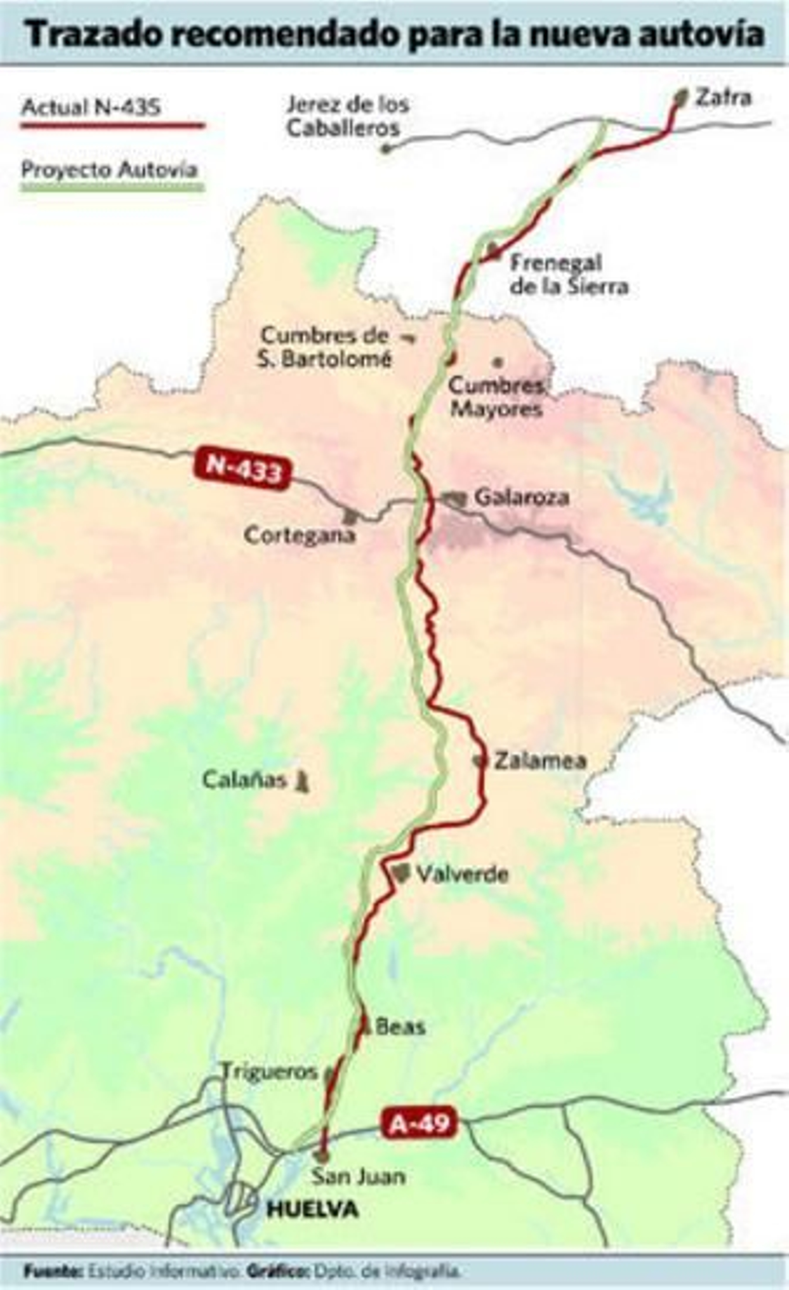 La autovía entre Huelva y Zafra va camino de convertirse en otro expediente eterno en el Ministerio de Medio Ambiente, uno más en una larga lista de proyectos que quedan varados a la espera de la Declaración de Impacto Ambiental. Desde julio de 2009, el expediente está a la espera del pronunciamiento del departamento de Miguel Arias Cañete, pero con la advertencia además del Ministerio de Fomento, que tramita la autovía, de que ésta presenta previsibles problemas ambientales. El paso por la Sierra será el principal escollo a superar por una autovía que lleva años encabezando la lista de reivindicaciones onubenses.