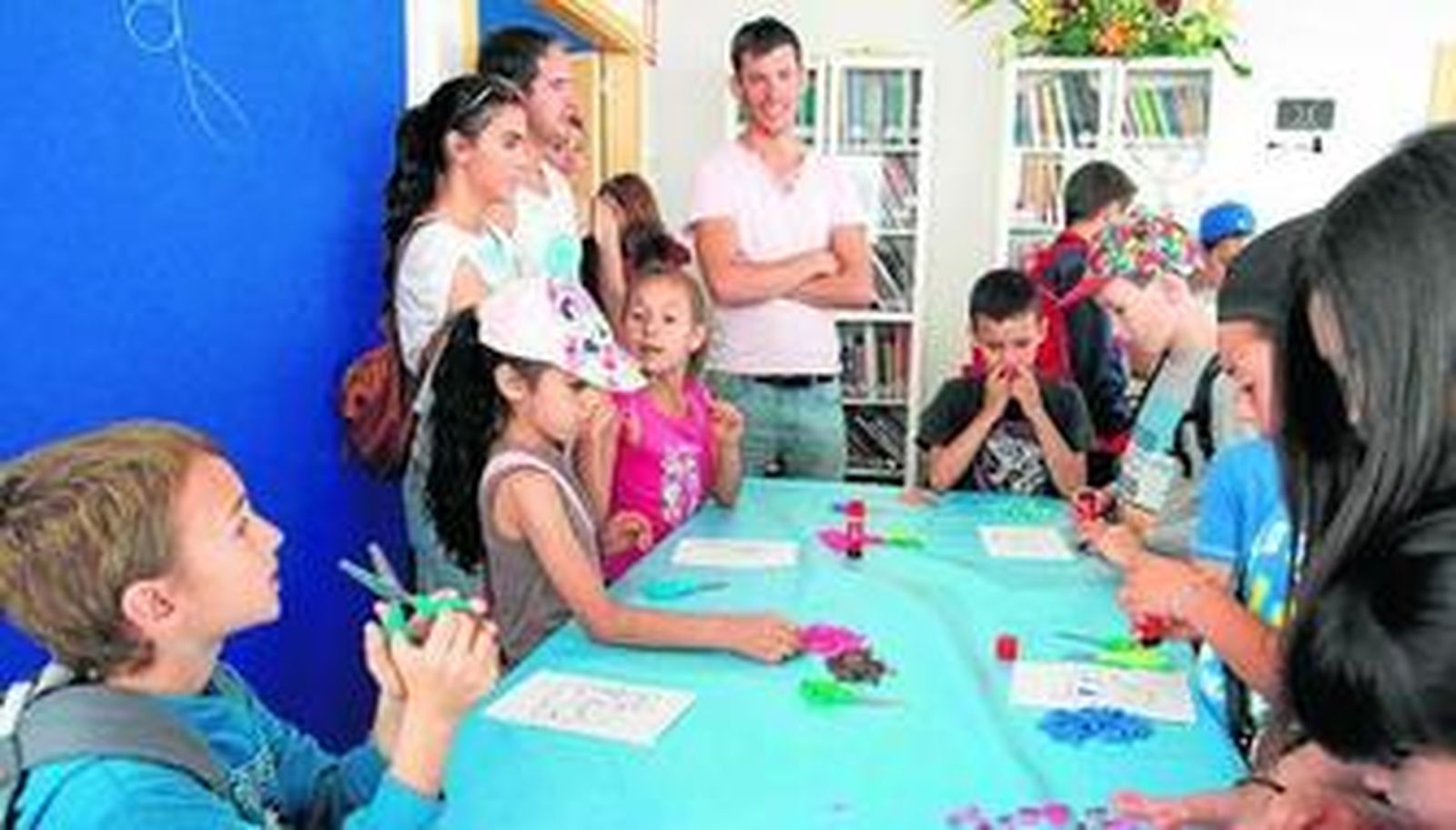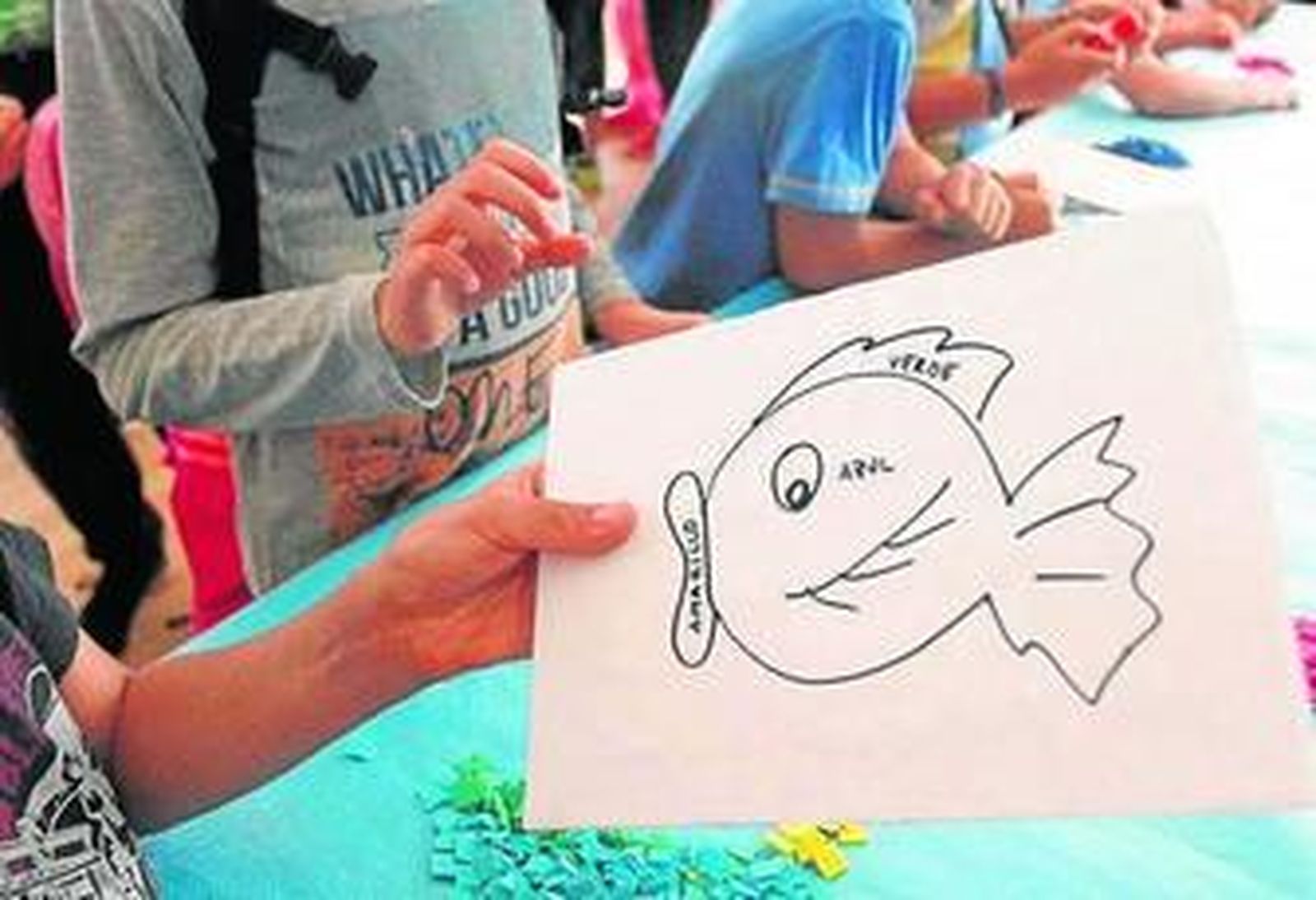 A continuación, los niños entraron en Puerta del Atlántico y participaron en un taller de mosaicos. Suárez les explicó que los romanos los hacía con teselas, "pequeñas piedrecitas con las que hacían dibujos", con los que adornaban los suelos de los edificios. Los niños en vez de teselas usaron pequeños trozos de goma eva de colores para realizar sus composiciones.