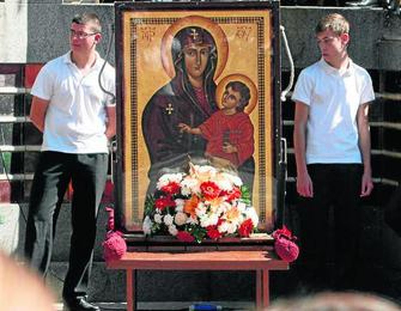 Tanto la Cruz como el Icono de la Virgen llegaron a la céntrica Plaza de las Monjas procedente del convento de las Agustinas. En el templete le esperaban el obispo y el coro de las Esclavas. El acto concluyó con un desfile de todos los jóvenes asistentes ante la Cruz y el Icono.