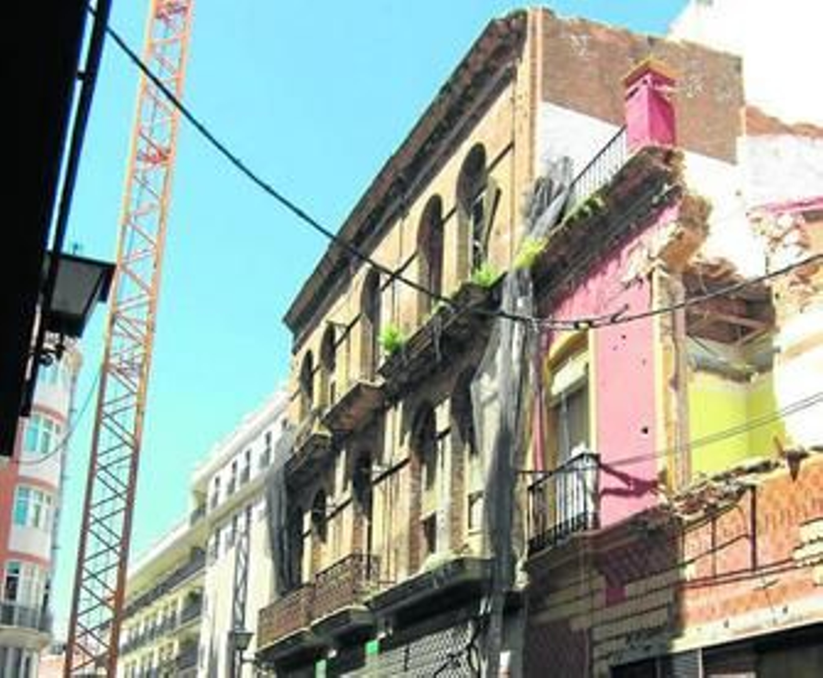 El fotograma de una ciudad fantasma lo tenemos ya en las inmediaciones del antiguo mercado de abastos, un cinturón de edificaciones en ruinas en torno al solar que próximamente se habilitará como parking. La piqueta borra estos días parte de los inmuebles que conforman el futuro espacio de la Plaza Mayor porticada, entre ellos la fachada histórica de la antigua Central Telefónica de la que fuera Calle del Peligro (actualmente calle Carmen), donde en los tiempos más recientes estuvieran los almacenes La Bilbaína, junto al antiguo bar La estrella de la calle Marina.