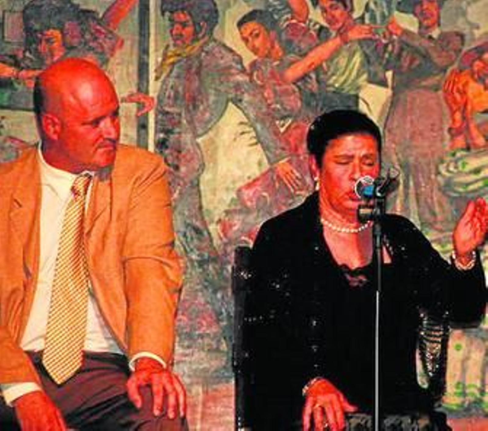 Tras la entrega de una placa conmemorativa al homenajeado, el acto siguió con la actuación del cuadro de cante de la peña. En este cuadro Juan Martín (Pecho Lobo, Chiqui, Luis María Cruz y la sorprendente Pepita Hernández (hermana de Perlita de Huelva), con la guitarra de Rafael Martínez de Nerva, dejaron más que alto el pabellón de los aficionados locales. Pepi cantó una milonga que le salió del corazón y el resto supo estar a la altura y abrir una noche fría para convertirla en un acto cálido y entrañable. Después le tocó el turno al baile con el cuadro de María José Jerónimo que deleitó al respetable con una gran actuación.