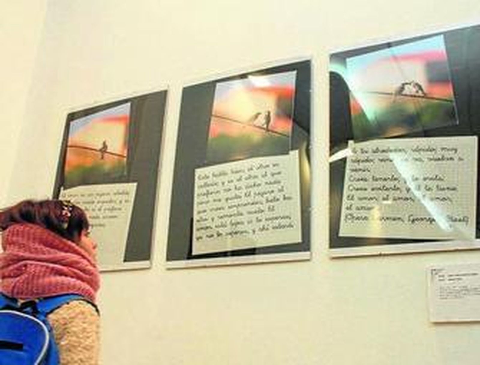 Distintos momentos de una boda o de tradiciones populares, atardeceres, escenas tan familiares como dos niños jugando, la evolución de una flor o de una familia son algunas de las historias que los integrantes muestran a los que acudan a ver esta exposición, que estará abierta al público hasta el 12 de febrero. Algunos de los montajes incluyen incluso pequeños textos con los que los autores refuerzan el mensaje de las imágenes.