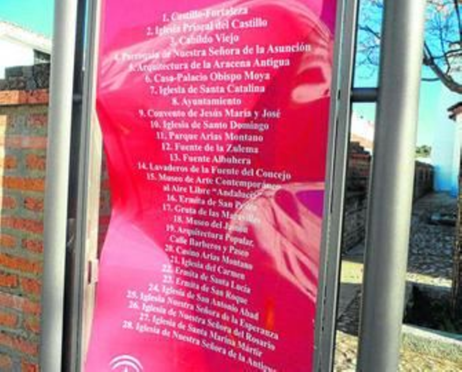 La incoherente e indígena mano de un desaprensivo ocasiona una vez más el estropicio del mobiliario urbano, en este caso, en Aracena. Se trata de una señal turística ubicada en la Plaza de Santa Lucía, que indica diferentes lugares a conocer por quienes visitan la localidad serrana. la persona incívica y sin respeto de la que hablábamos al principio ha propinado un buen golpe al cartel, lo ha hundido y despegado de sus agarres laterales.