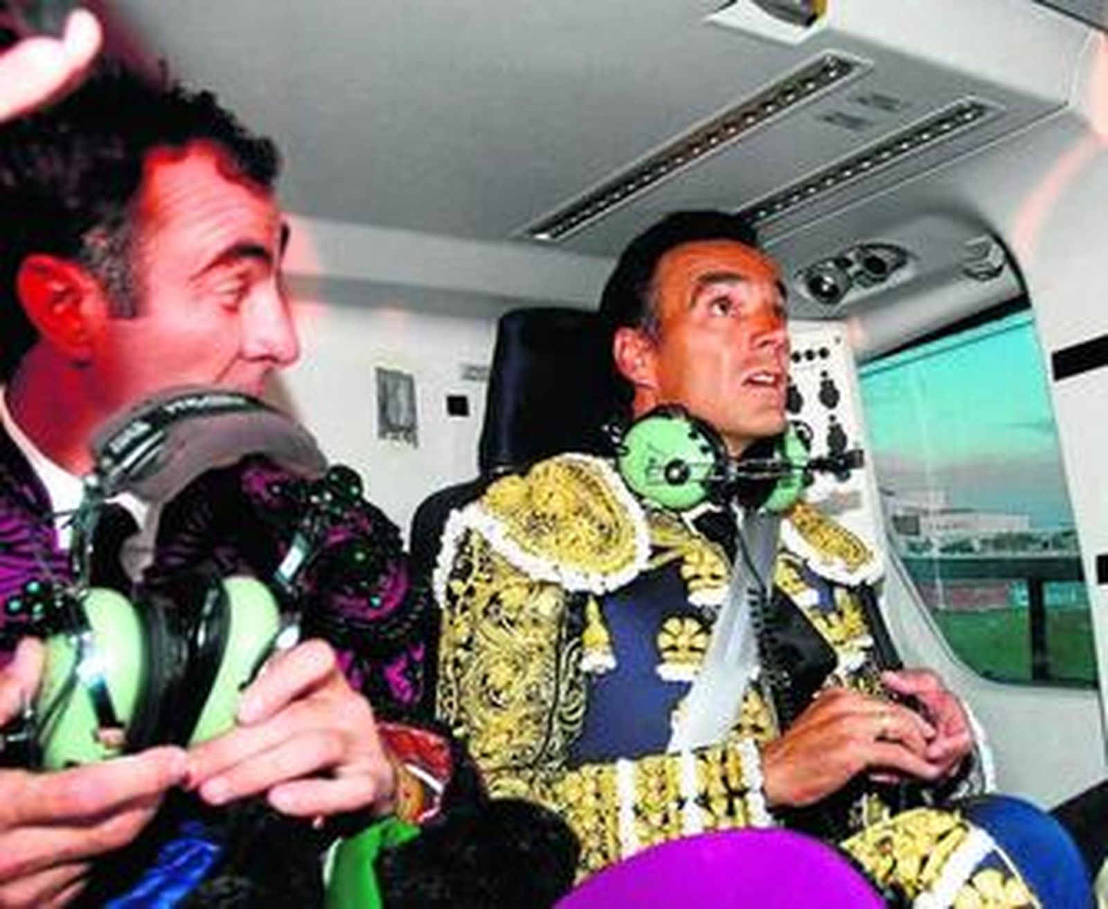 JUGADA poco ortodoxa, aunque con el beneplácito de la presidencia y de sus colegas de cartel. Tocata con oreja para Manuel Jesús 'El Cid', y fuga a bordo de un helicóptero hacia el Puerto de Santa María, donde el diestro toreaba a partir de las 23:00. Sus faenas, efectivas, cortitas y sin sorpresas. Como todos los años. El de Salteras hizo el paseíllo pasadas las 19:30 y pasada hora y media abandonaba el ruedo junto a su cuadrilla entre palmas desangeladas. Huelva no lo merece. El Cid estoqueó los toros primero y cuarto tras cederle el sitio El Cordobés, y vestido aún de luces marchó en furgoneta, escoltado por la Policía Local, hasta la Ciudad Deportiva del Recreativo de Huelva, donde le esperaba el aparato. Con el viajaron por los aires, sanos y salvo, dos de sus banderilleros, un picador, el mozo de espadas y uno de sus dos apoderados, Santiago Ellauri. Mientras, en automóvil viajaron los demás miembros de la cuadrilla. El viaje por carretera tiene una duración de al menos tres horas y media, pero en helicóptero el trayecto Huelva-El Puerto de Santa María se hizo en tan sólo veinticinco minutos sobrevolando Doñana. El aparato tomó tierra en el helipuerto de Puerto Sherry, donde esperaba al torero y sus acompañantes el otro apoderado, Manuel Tornay, y un chófer con el coche de cuadrillas. Lo de torear dos corridas en un mismo día fue muy frecuente en las décadas de los sesenta con Manuel Benítez, El Cordobés, y de los noventa con Jesulín de Ubrique, trasladándose los toreros en helicóptero o avioneta, incluso por carretera cuando la distancia lo permitía.