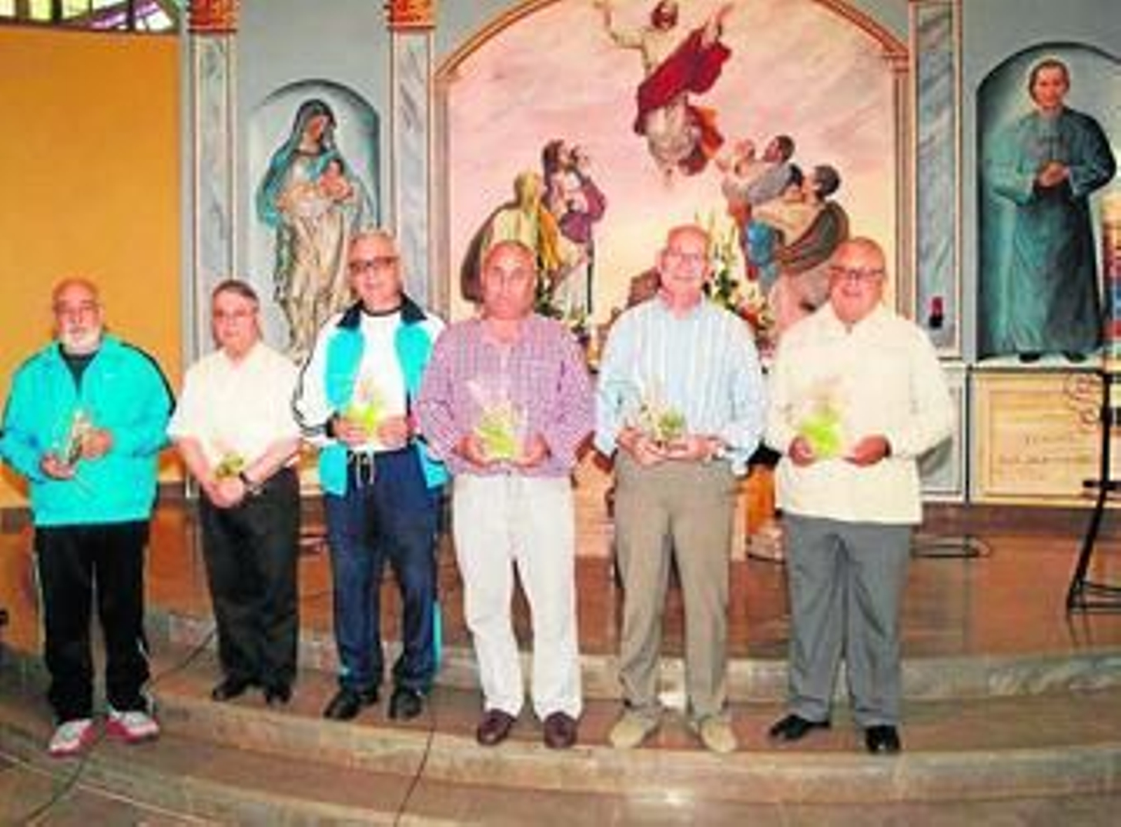 La última Comunidad Marista de Huelva está integrada por el superior Juan José Mina Ezpeleta y los hermanos Andrés Arnaiz Arroyo, Eliseo Ortega Moreno, Esteban Aparicio Mancilla, Juan García Martínez y José Luis de Vicente Carmona, que han recibido un caluroso homenaje de la familia marista de Huelva.
