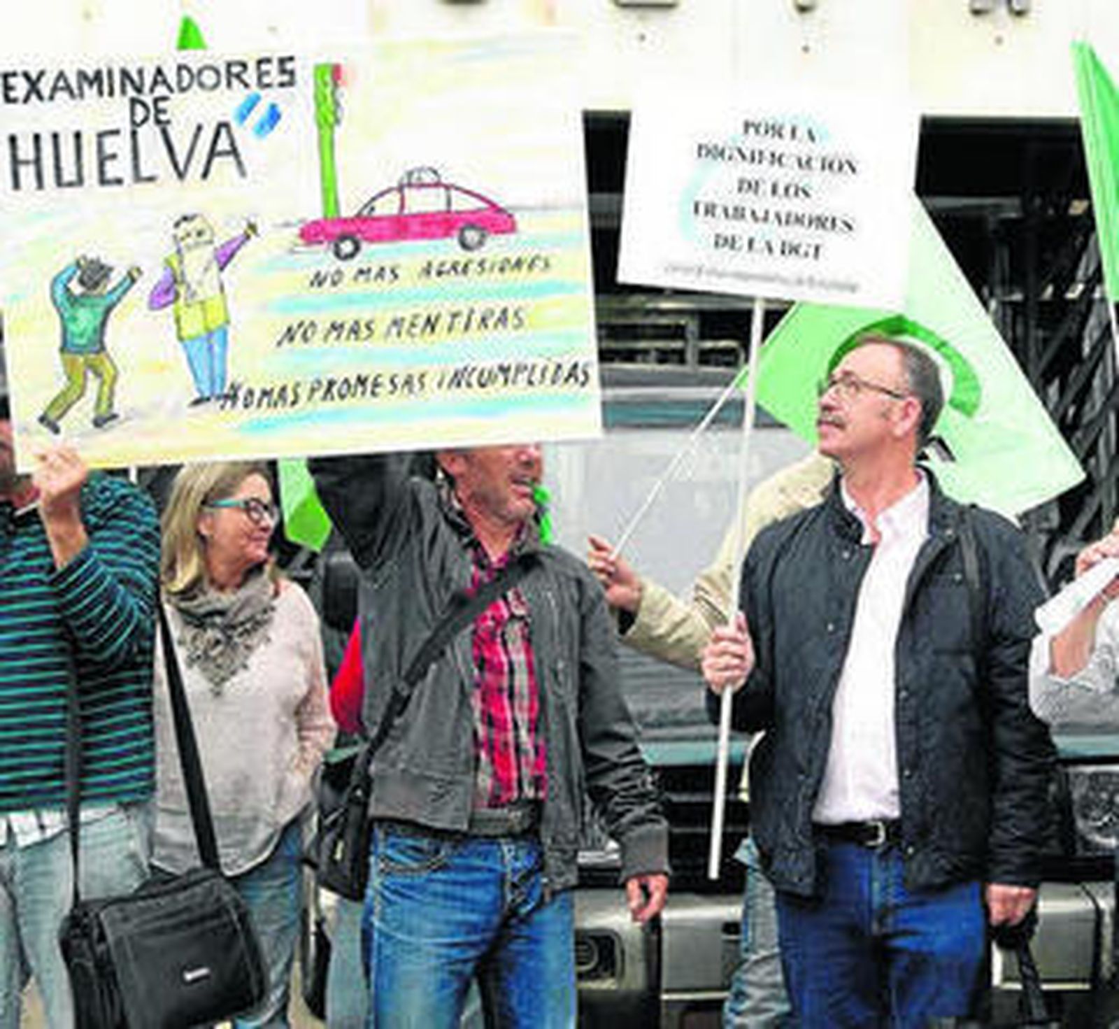 Pero otros trabajadores también se manifestaron ayer. Fueron precisamente los examinadores para obtener el carné de conducir. Después de esas seis semanas de huelga, el sindicato CSIF -convocante de las movilizaciones- cifra en más de 800 los exámenes para obtener el carné de conducir que han sido suspendidos, una cifra que asciende a los 65.000 a nivel nacional. Desde el 14 de septiembre, en torno al 75% de los examinadores de Tráfico vienen realizando huelgas parciales de tres horas al final de la jornada como protesta por los recortes que desde hace cinco años, "han mermado las dotaciones y las plantillas de la DGT hasta niveles muy por debajo de lo que la propia Administración trazó como líneas rojas", según explicó José Juan Díaz, portavoz provincial de CSIF en la DGT.
