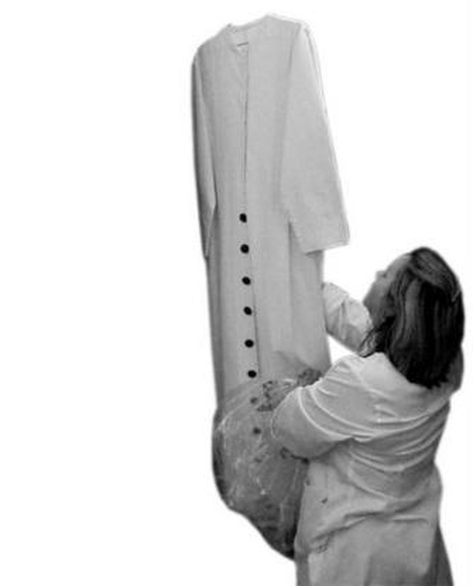Cera que desaparece, junto con los restos de suciedad que presentan capas y túnicas en sus bajos, con lavados en máquina en seco "que no se lavan en seco, sino con un producto derivado del petróleo denominado percloroetileno. Lo que ocurre es que la ropa sale de estas megalavadoras secas, pero eso es otra cosa", aclara Marta Albiñana, de la tintorería Europa, mientras plancha una dalmática de una de las cofradías de la capital. "Estas piezas deberíamos cobrarlas por el riesgo que correremos los profesionales al limpiarlas y plancharlas, ya que debemos tener sumo cuidado pues como te pases de la raya puedes soltar uno de los hilos de oro que lleva bordados y destrozar la prenda, pues a este hilo, inmediatamente le seguirán los demás".