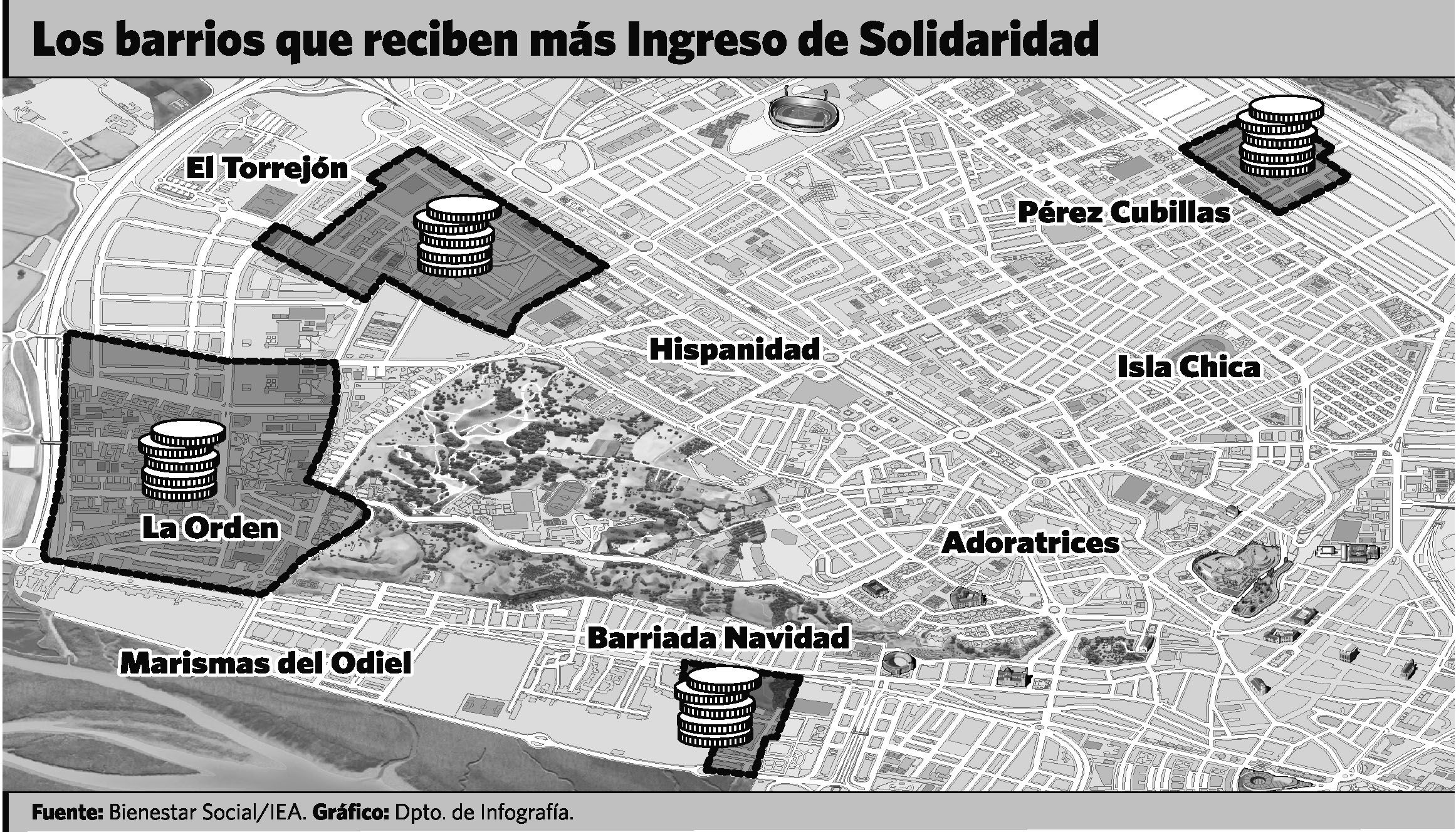 Las personas atendidas en el programa de Solidaridad que cuentan con estudios superiores son una minoría que, en la mayor parte de los casos, es víctima de las drogodependencias. En esos casos, la prestación queda vinculada al seguimiento de un programa de desintoxicación. El IMS se extiende hasta un máximo de seis meses y equivale al 62% del Salario Mínimo Interprofesional (SMI) si bien, la cantidad se incrementa un 8% por cada miembro de la unidad familiar de la persona benericiaria hasta alcanzar el tope del SMI, es decir, los 600 euros. Durante esos seis meses de percepción del IMS, la persona se incorpora a las distintas ofertas de formación e inserción laboral de la Junta de Andalucía y sus entidades colaboradoras, a fin de erradicar las bolsas de pobreza y las circunstancias que las producen. En algunas ocasiones, las situaciones que han de afrontar son tan precarias que se debe hacer un primer desembolso de mayor cuantía.