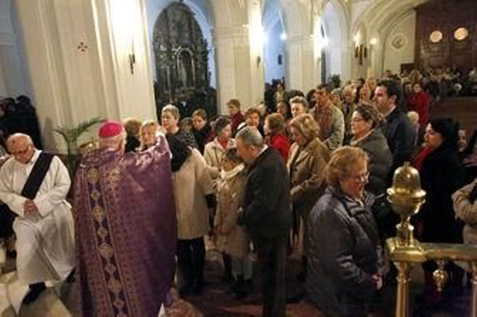 Signos que vienen a la llamada de la Cuaresma. El obispo de Huelva, José Vilaplana Blasco, habló de la sencillez del acto, "con la ceniza que recuerda que somos polvo y al polvo volveremos", un tiempo que "habla de la fragilidad humana". "Es verdad que nos dice que somos poca cosa, pero se nos presenta la alegría del Evangelio", señala José Vilaplana. El obispo centró sus palabras en la homilía del Miércoles de Ceniza en la Carta de Cuaresma del papa Francisco y en el quinto centenario de Santa Teresa, que "es una invitación a renovar desde el interior, en un camino a encontrar a Dios en la oración, la limosna y el ayuno".