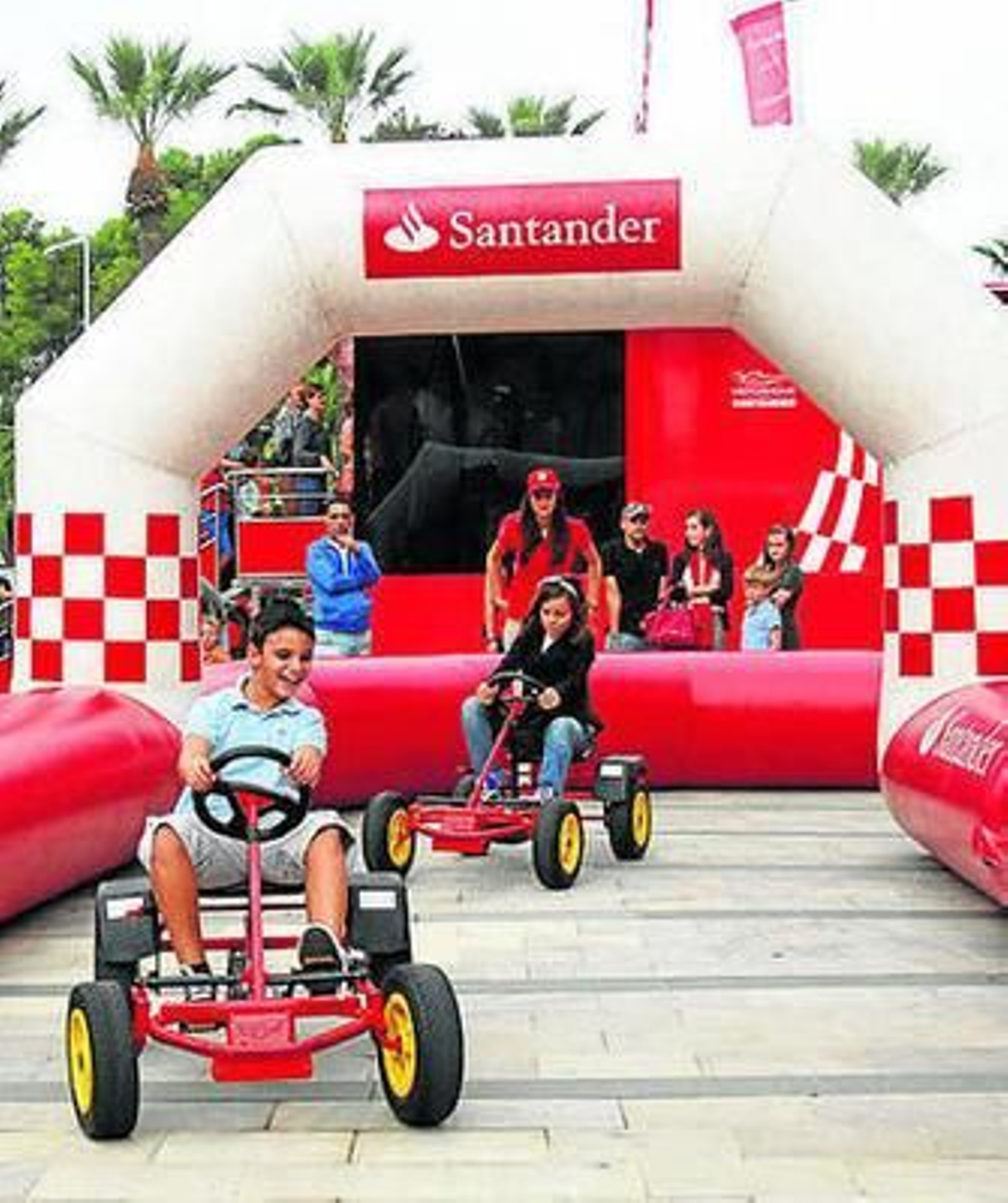Un gran número de personas, en su mayoría adultos acompañados de niños, se fueron concentrando ayer, a partir de las once de la mañana, a las puertas del Motorhome Santander, para ser de los primeros en contemplar la réplica de Ferrari y disfrutar de los atractivos de la exposición, fundamentalmente de los simuladores, en los que los coches que se conducen en el circuito virtual pueden alcanzar una velocidad de 320 kilómetros por hora.