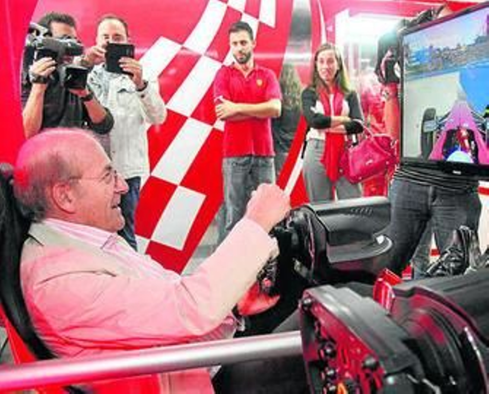 Rodríguez no dudó en montarse en uno de los simuladores y vivir en directo la experiencia de un piloto de Fórmula 1; fotografió con su móvil la réplica del Ferrari y se subió al podio del photocall, donde se le sacó una fotografía con la copa del Gran Premio Santander.