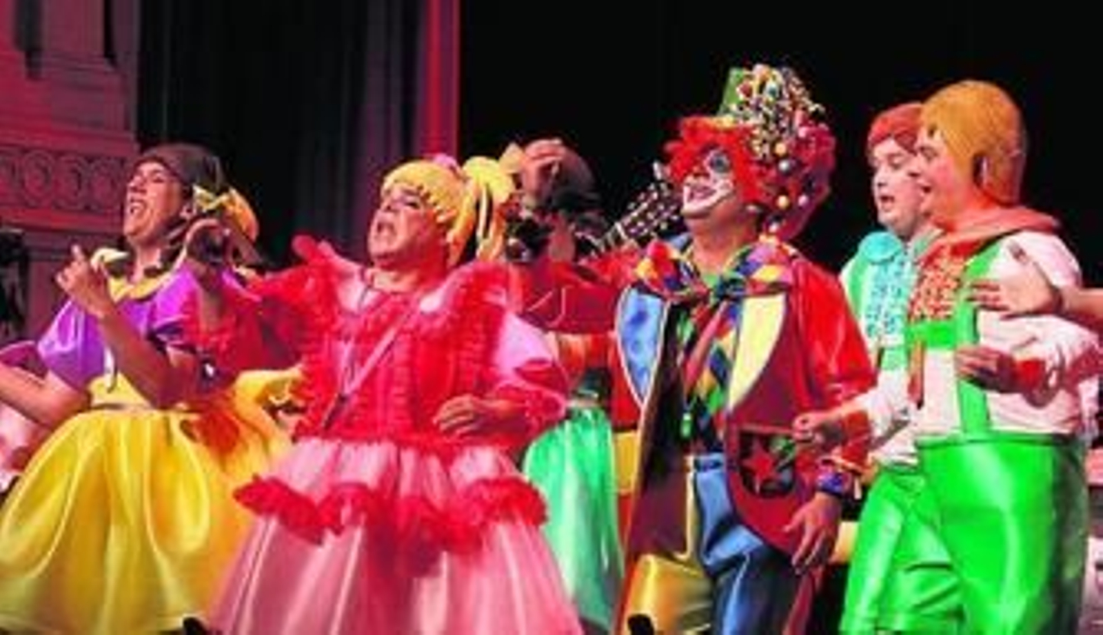Abrió la velada la murga de Punta Umbría Una chirigota que cumple, que enseguida rompió el hielo con la puesta en escena. Son niñas pequeñas que celebran su cumpleaños, con payaso incluido, que hacen gala de la inocencia y la travesura a esa edad. Hicieron juegos, baile, adivinanzas con piñata incluida. Hablaron del baile que más le gusta a sus madres, la zumba con el profesor, del afán de sus padres de hacer algo de ejercicio con la bicicleta, incluso cantaron el cumpleaños feliz en chino. Con unos trajes muy coloristas y pompas de jabón por el escenario, no se olvidaron de hacer un recorrido por la historia de Huelva y la situación actual. El año pasado fueron Los machos ibéricos.
