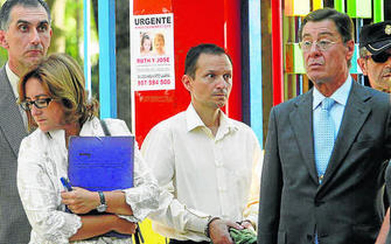 La decisión de recrear el episodio fue tan repentina que el Cuerpo Nacional de Policía no tuvo tiempo de acordonar la zona, por lo que la prueba se desarrolló ante la mirada atenta de decenas de curiosos y ante los periodistas. Fue llamativo que la comisión judicial no tuviera reparos en exhibir durante una hora a Bretón, quien desde que presentó la denuncia por la desaparición de los dos pequeños se ha esforzado por mantenerse alejado de la opinión pública. Esposado e intentando ocultar los grilletes con un jersey verde, el padre se mostró impasible, casi indiferente a lo que ocurría a su alrededor. Pasó ante las fotos de sus hijos sin inmutarse y soportó sin pestañear los comentarios y los insultos de los curiosos. Sólo se conmovió por momentos cuando el juez le hizo pasar por segunda vez sobre el lugar desde el que, según su propia versión, vio a sus dos pequeños por última vez. Hizo una mueca de llanto, se llevó las manos a los ojos y recuperó el estoicismo.