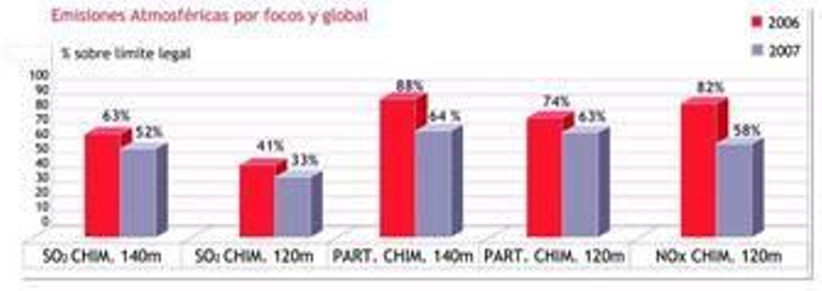 En general, con las medidas correctoras que se han puesto en marcha en los últimos 12 años, los valores de emisión se han reducido un 68%. "Hace tres años -destacó Díaz Cabrera- ese descenso fue del 50% en comparación con 1995, lo que avala el éxito de la gestión ambiental de 2007, un año en el que hemos superado las exigencias de la legislación en la mayoría de los parámetros, que se mantuvieron por debajo de los nuevos límites".