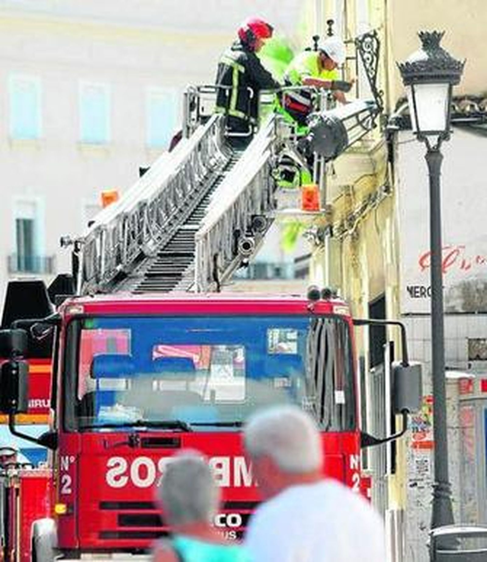 La actuación de los bomberos y técnicos municipales en la calle Méndez Núñez despertó gran curiosidad entre los vecinos