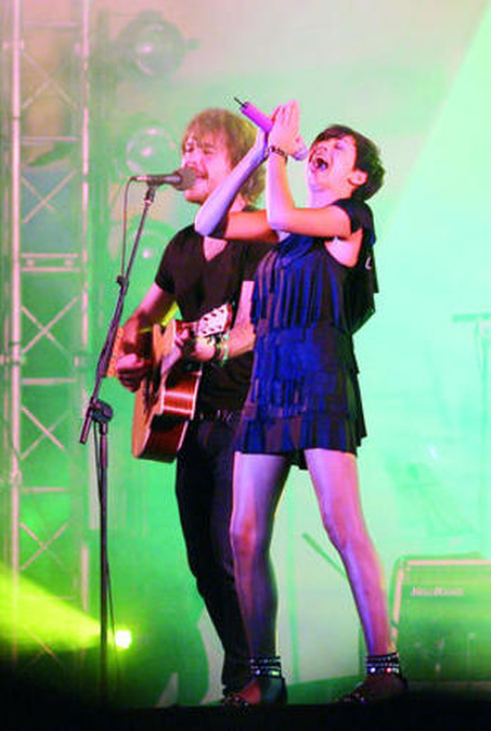Miles de fans se agolparon en el espectacular entorno de la ría onubense para no perderse detalle de la actuación, al tiempo que cantaban y bailaban los temas interpretados por el grupo.