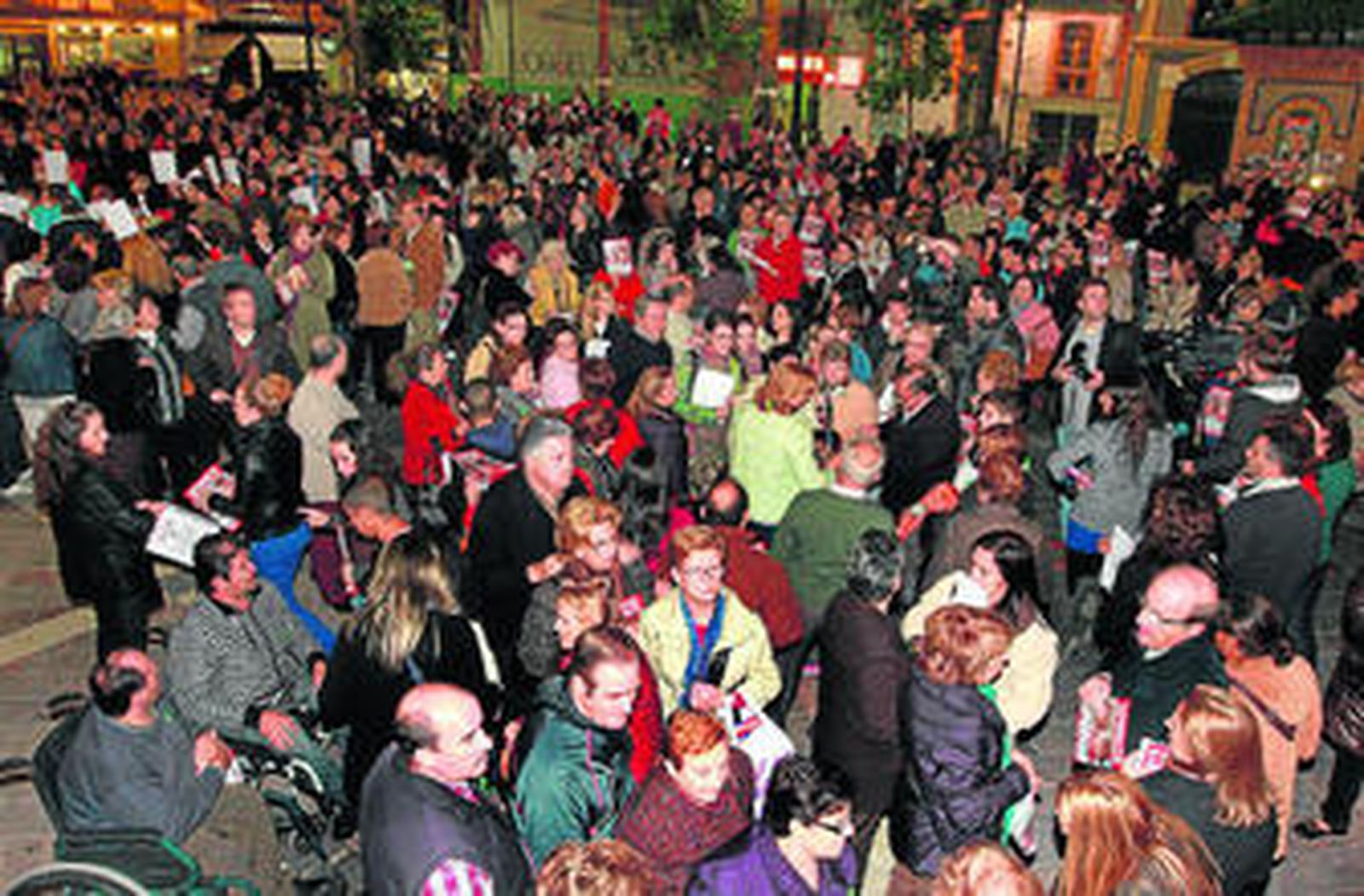 La concentración más multitudinaria, en la Plaza de Las Monjas de Huelva. La gente se fue arremolinando en el corazón de la capital onubense incluso una hora antes de la convocatoria. Allí, voluntarias de la plataforma Urgente: Niños Desaparecidos repartieron por decenas los lazos verdes que mantienen vivo el recuerdo de los dos pequeños. Entre ellas, Mari Carmen Benítez, amiga íntima de la abuela materna de los menores, que con los ojos vidriosos reclamaba su presencia: "Queremos tenerlos ya haciendo bulla y jugando con mi nieto, que dice que no quiere comer más chocolate con churros si no es con Ruth y José".