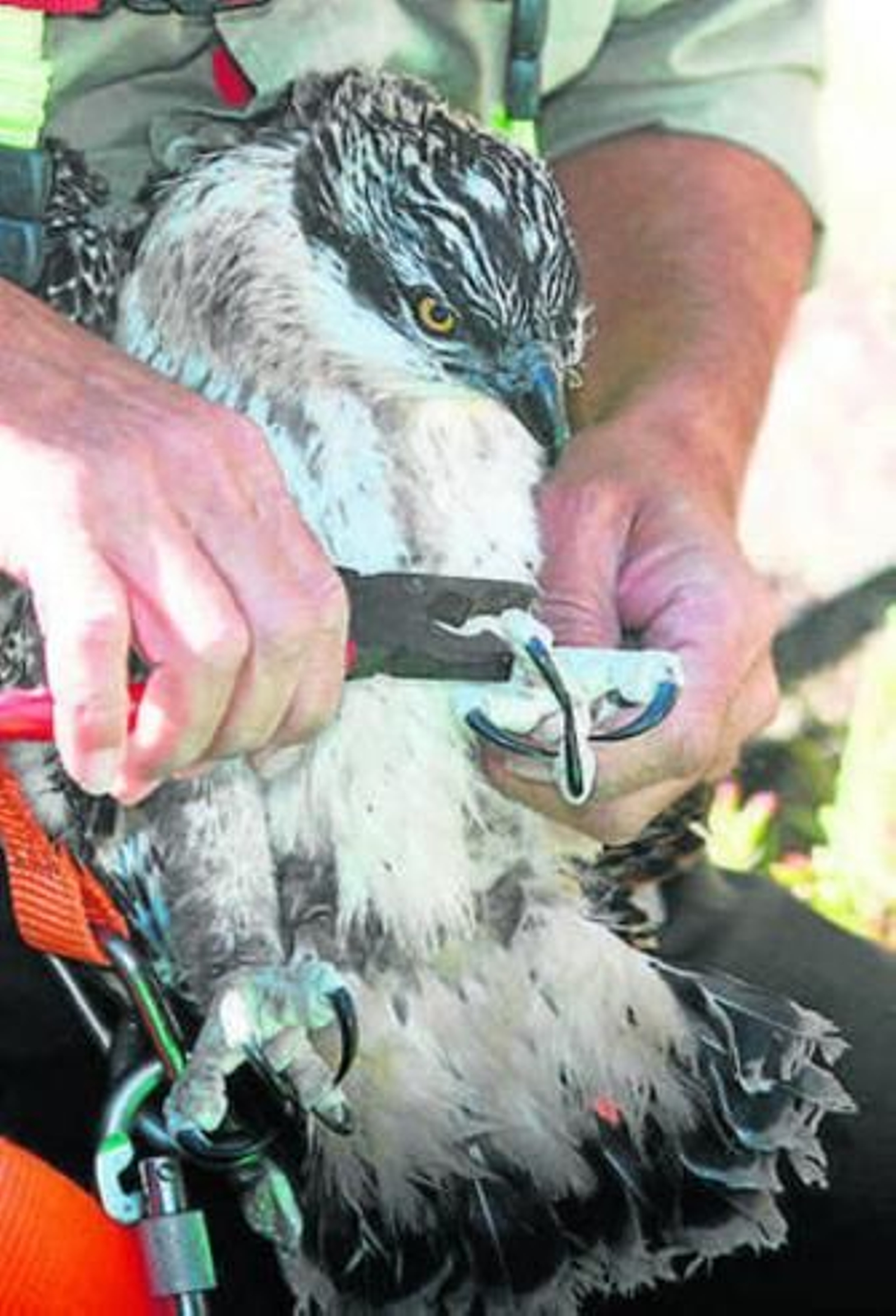 El ornitólogo señaló que las uñas de las patas tienen la misma curvatura y el mismo tamaño y cuando el ejemplar cumple un mes de vida se le cubren los dedos de espículas "que evitan que se les escapen los peces". En cuanto a la cabeza, subrayó "que no hay individuo que tenga el diseño encefálico igual, éste no varía con la edad, es un carné de identidad" y destacó que el águila pescadora "es muy tranquila respecto a otras aves rapaces".
