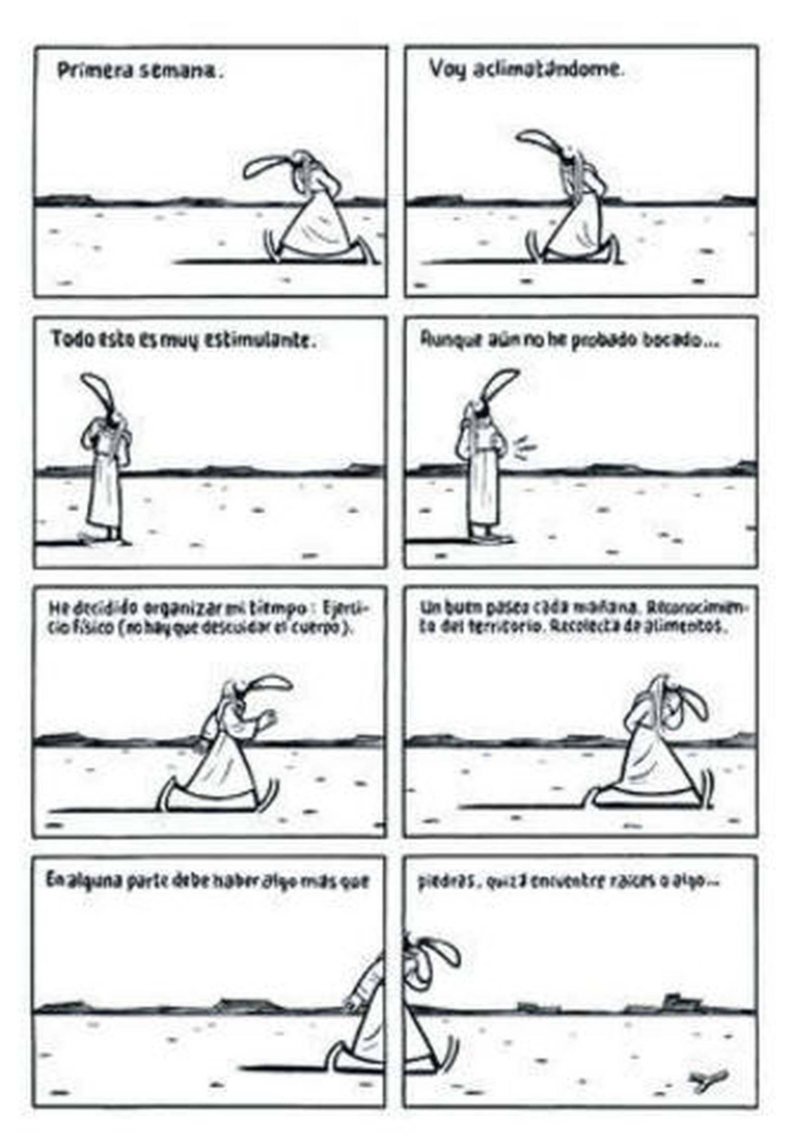 La estética que Max ha compuesto para Vapor se confiesa heredera de las visiones del desierto de Moebius y Herrimann -referencias ineludibles si lo que se quiere es describir un vacío onírico-, y hay un homenaje directo al pionero historietista Herbert E. Crowley y su The Wiggle Much, rescatado para nuestra generación por Dan Nadel en su célebre antología Art Out of Time: Unknown Comics Visionaries 1900-1969. También encuentro resonancias del trabajo de Jim Woodring y su Frank, obra superlativa del cómic contemporáneo, y cierta filiación con aquella maravilla de Silvestre -que es otro nombre de Federico del Barrio- titulada Simple.