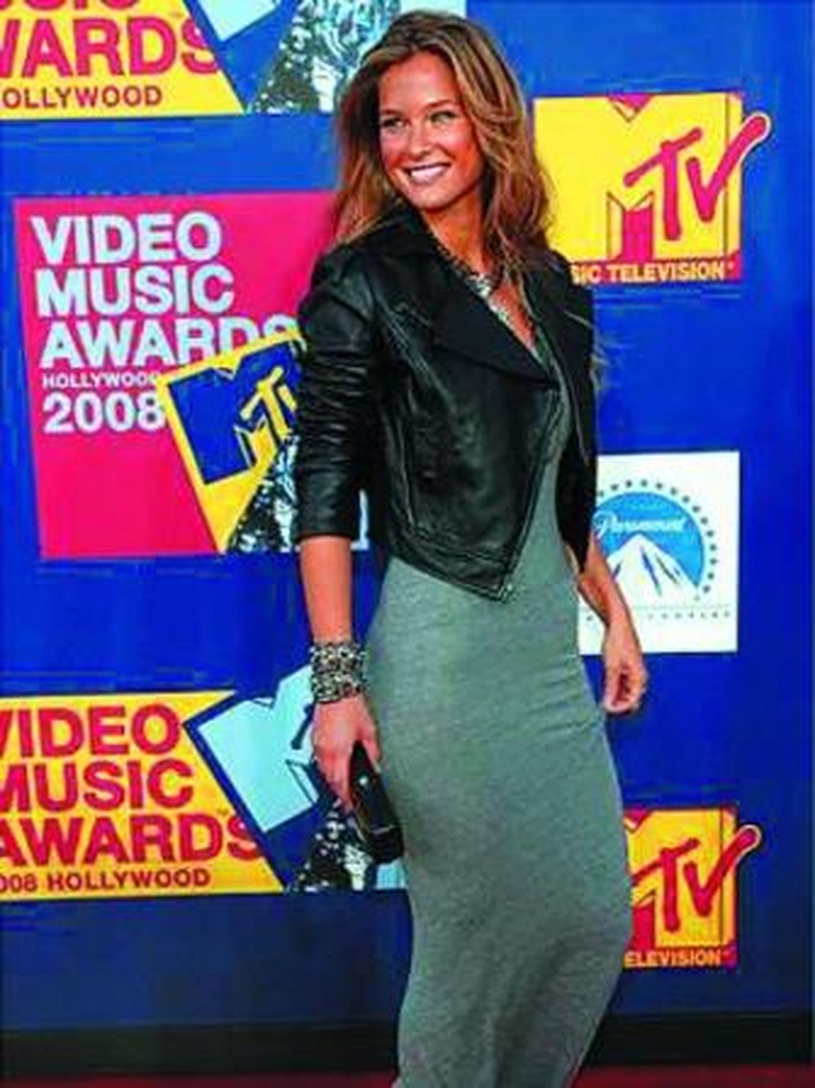 Quizás lo que más llamó la atención fue la sencilla apariencia de Bar Refaeli, que acudió a la ceremonia con un sencillo vestido de punto gris hasta los pies y una mini cazadora de cuero.
