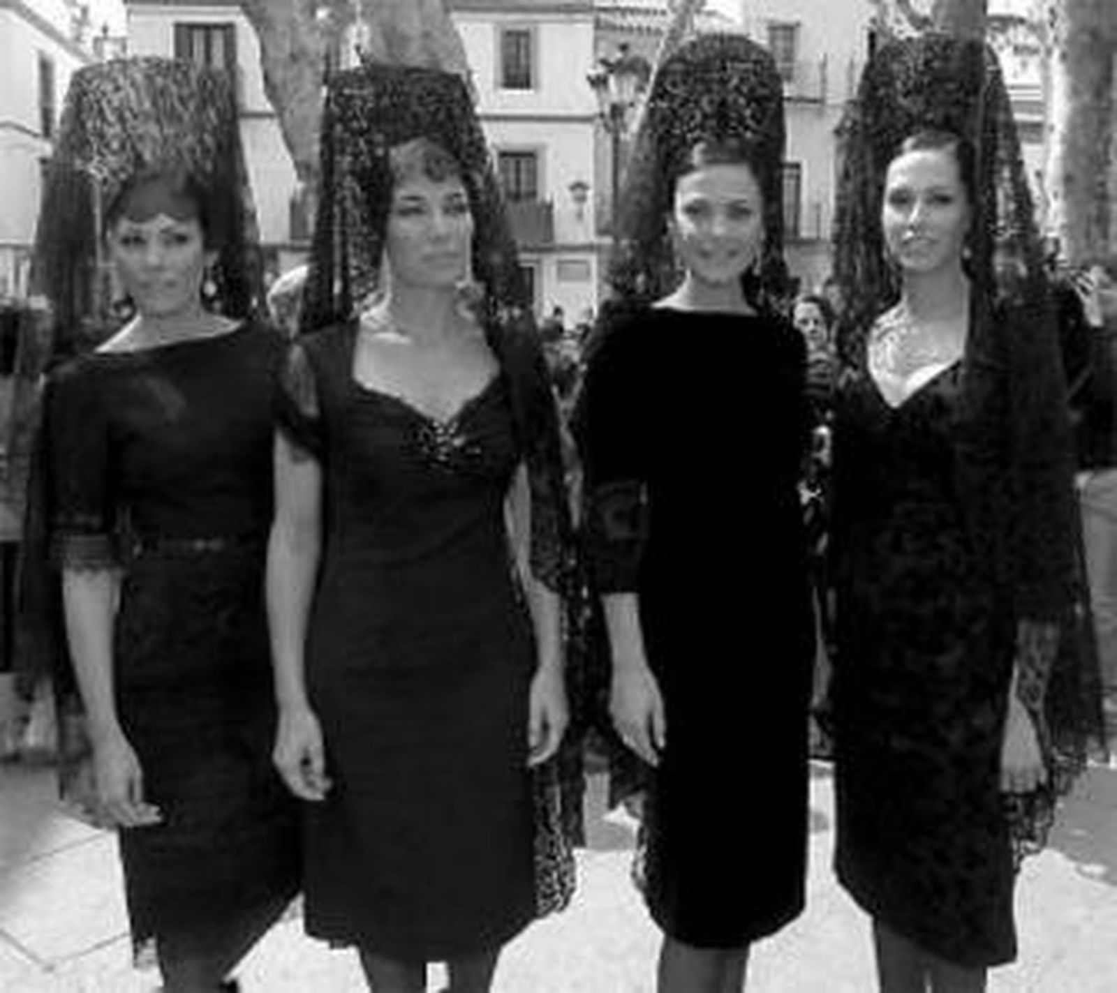 Vinculada poco a poco a usos religiosos, su ritual ha protagonizado un acto de la Cámara de Comercio de Sevilla celebrado antes de ayer en el Museo de Carruajes de la ciudad. Allí se dieron cita diversos expertos para analizar, desde la perspectiva de la moda, el fenómeno de la mantilla en la actualidad que pasa, en primer lugar, por un vestido y un calzado adecuado. "Es algo muy serio porque se trata de ir a rezar y a pedir por Cristo. Por eso no se pueden usar escotes demasiado grandes ni mangas cortas. El largo va desde la media pierna a otros mayores y, en cuanto al tejido, a mí me gusta el terciopelo, aunque comprendo que, por el calor, se opte por otro tipo de tela como el raso", explica Tony Benítez acerca de la cuestión. "Desde pequeño las he admirado hasta tal punto que, una de las colecciones más importantes de mi vida -que presenté en la sala Joy Eslava hace treinta y dos años-, fue precisamente un conjunto de mantillas que encabezaba Manuela Vargas. Las de chantilly son más bonitas y, las de blonda, más de nuestra tierra". En cuanto a los complementos, el diseñador apuesta por los corales o, en todo caso, por pequeñas perlas que no resten protagonismo ni formalidad al conjunto.