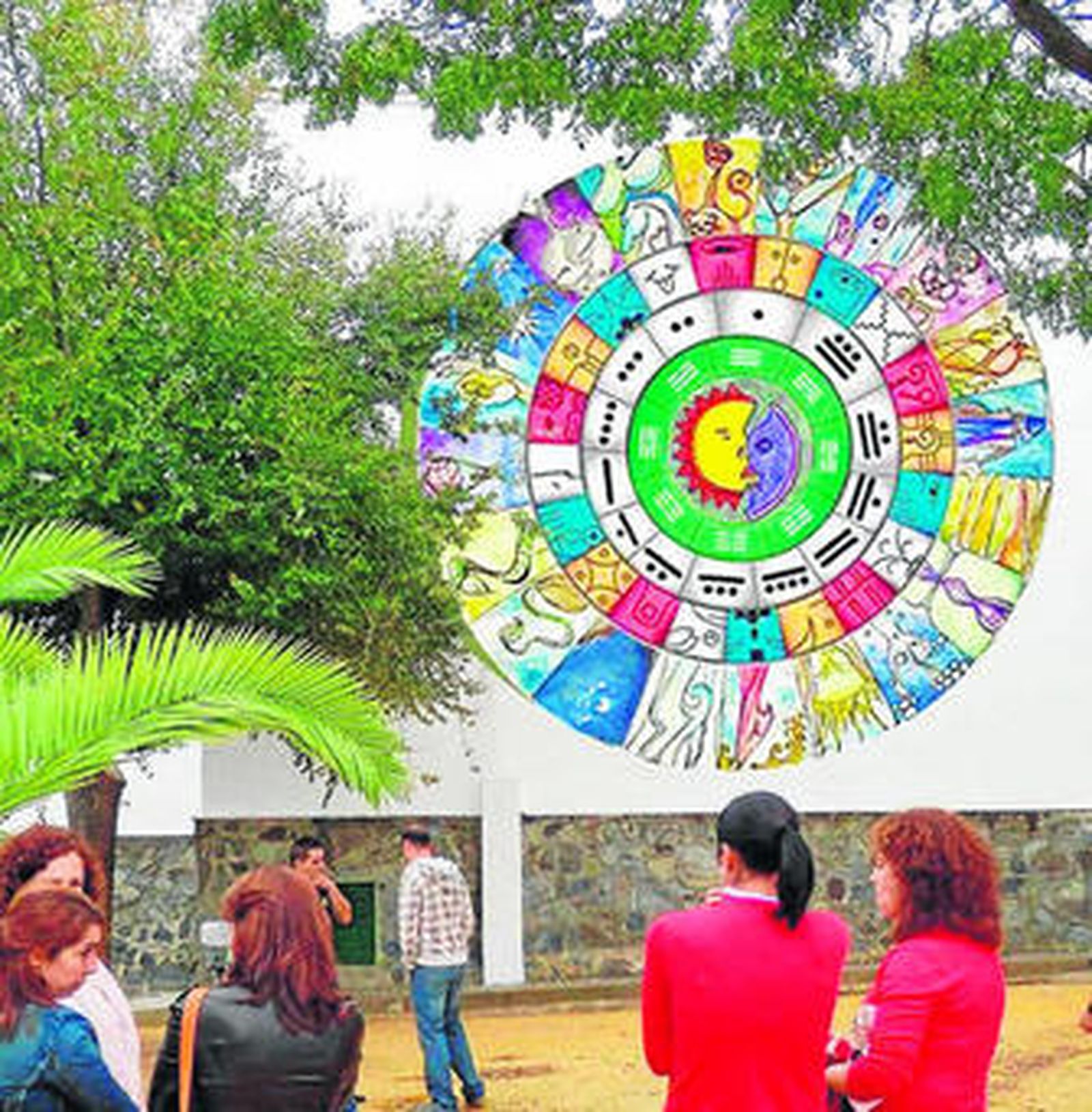 Alejarse de la interpretación apocalíptica buscando una sincronización más armónica con la naturaleza, dirigiendo la mirada hacia los aspectos más positivos de la propia vida y del conjunto de la sociedad es el objetivo del mural del calendario Maya que los artistas Rafael Mélida y Mónika Rasco realizan en el colegio público Aurora Moreno de Gibraleón.