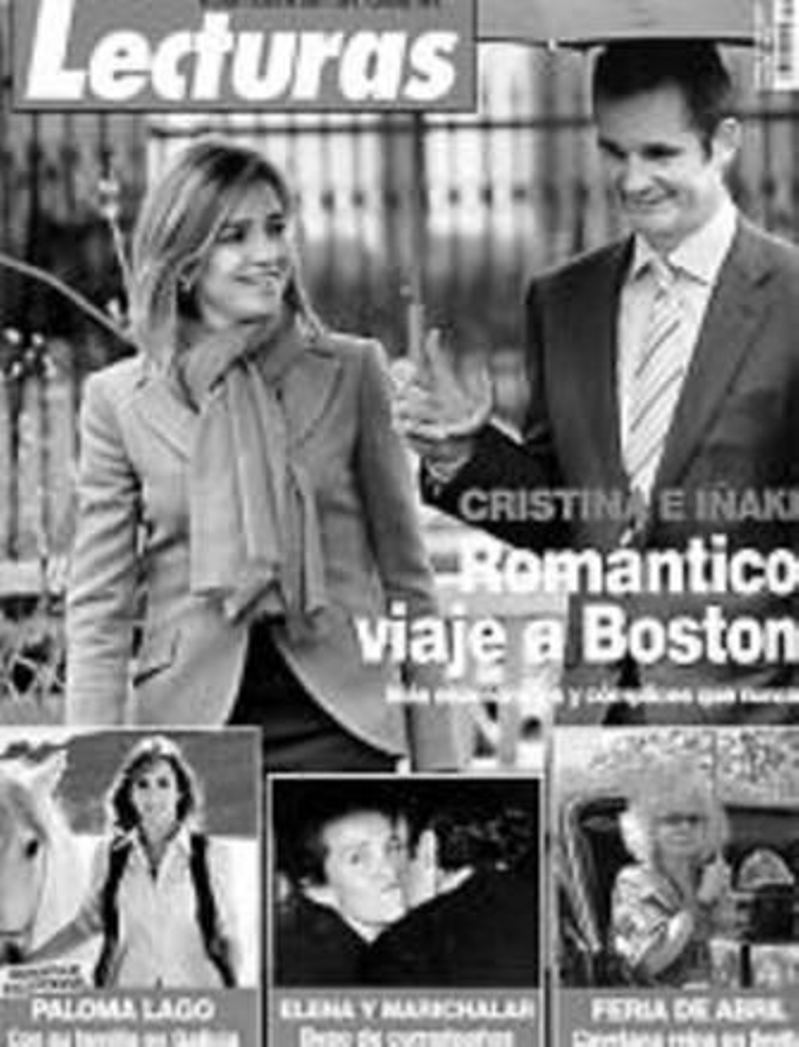 Lecturas cede el protagonismo a los felices Cristina e Iñaki Urdangarín, de viaje oficial a Boston. La otra cara, la ofrece la Infanta Elena quien recibió la visita de su ex, Jaime de Marichalar, que le llevó a sus hijos en común a la celebración de su 45 cumpleaños.