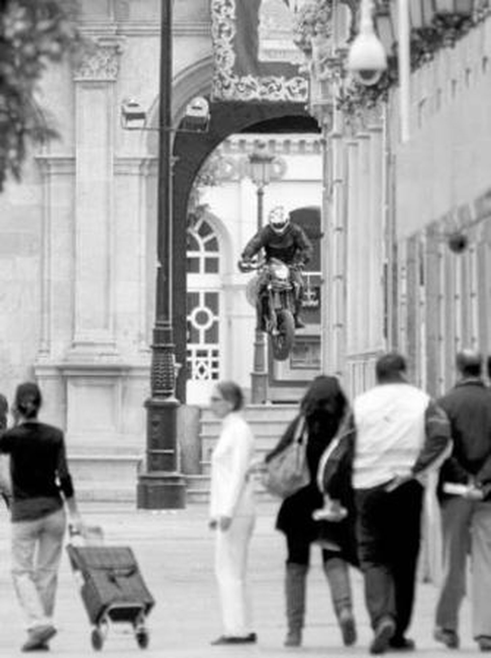 "Esto es una película de Antonio Banderas con motos para un anuncio de coches", comentaba una señora, un tanto despistada, entre tanto despliegue del equipo de rodaje, que permanecerá en Sevilla hasta mediados de diciembre.