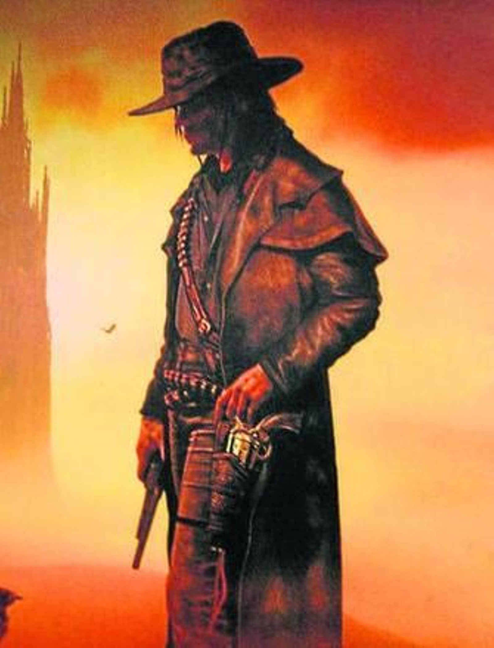 En el mundo de La Torre Oscura, los pistoleros son caballeros andantes con un férreo código del honor, y los forajidos, hechiceros que manejan los conjuros con tanta habilidad como los revólveres. Quienes pertenecen a la nobleza son educados desde niños en el arte de la guerra y, en tanto tal, Roland Deschain (cuyo nombre es una variación de Roldán, el famoso paladín francés) se arroga el derecho a ser investido pistolero a sólo catorce años. Su primera misión -que se narra en El nacimiento del pistolero- lo lleva hasta la ciudad de Hambry para comprar caballos para la Afiliación, pero el cometido auténtico es espiar los movimientos a favor de Farson, una especie de brujo con una máscara de piel humana en inquietantes tratos con el Rey Carmesí, un diablo de las profundidades, si no el Diablo mismo. Se teme que el petróleo de la zona esté destinado a Farson, quien querría refinarlo y utilizarlo en máquinas de combate de tiempos remotos, sospechosamente parecidas a los tanques usados en las dos guerras mundiales del siglo XX, con lo cual, el relato aventaría brumas post-apocalípticas en torno a sí. Según una profecía, ingrediente muy socorrido en tales menús, el jovencísimo Roland Deschain acabará con las huestes del Mal. Mientras lo consigue, tendrá que vérselas con monstruos y peligros mil.