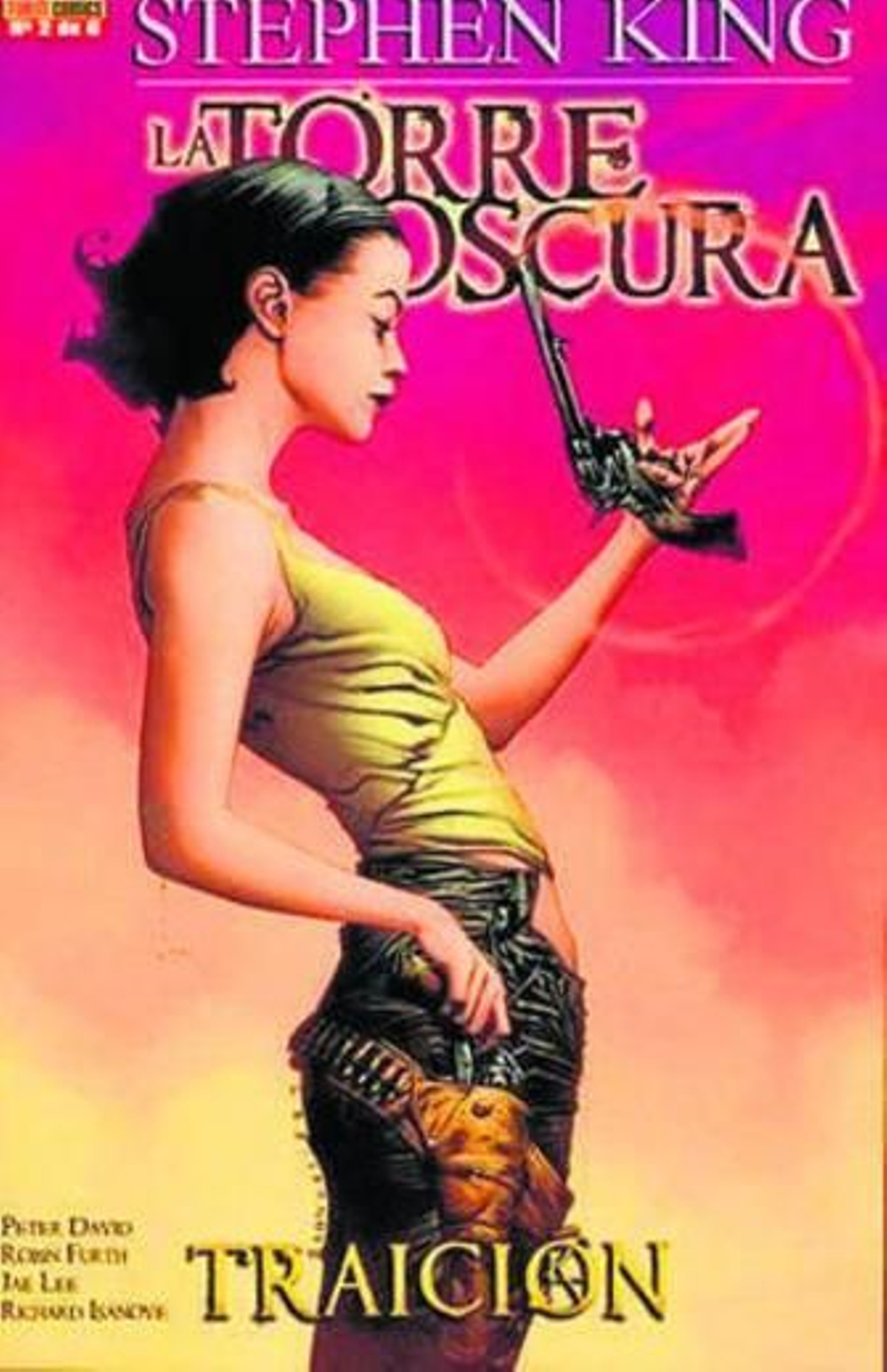 Entre tanto, La Torre Oscura se ha convertido en un cómic, no exactamente una adaptación, sino un apéndice de este proyecto narrativo, que desarrolla aquellos hechos sobre la juventud de Roland Deschain aludidos o esbozados en las novelas. De los argumentos se ha encargado Robin Furth, una escritora que parece conocer la mítica de La Torre Oscura mejor que King; los guiones, por el contrario, son obra de Peter David, un escritor con una amplia experiencia para el sello Marvel; y las ilustraciones se han puesto en manos de Jae Lee, bien respaldado por los colores de Richard Isanove. Stephen King aparece en los créditos como director creativo y director ejecutivo -o sea, como inspirador y supervisor del empeño-, pero su nombre domina en solitario las portadas de los tres volúmenes aparecidos hasta la fecha: El nacimiento del pistolero, El largo camino a casa y Traición (todos ellos publicados por Debolsillo). Estamos en el terreno de King pero, afortunadamente, fuera de su jurisdicción. Ante todo, debe celebrarse que el cómic no haya cedido a cuanto tenía de "mercancía de éxito garantizado", al menos en lo que al dibujo se refiere.