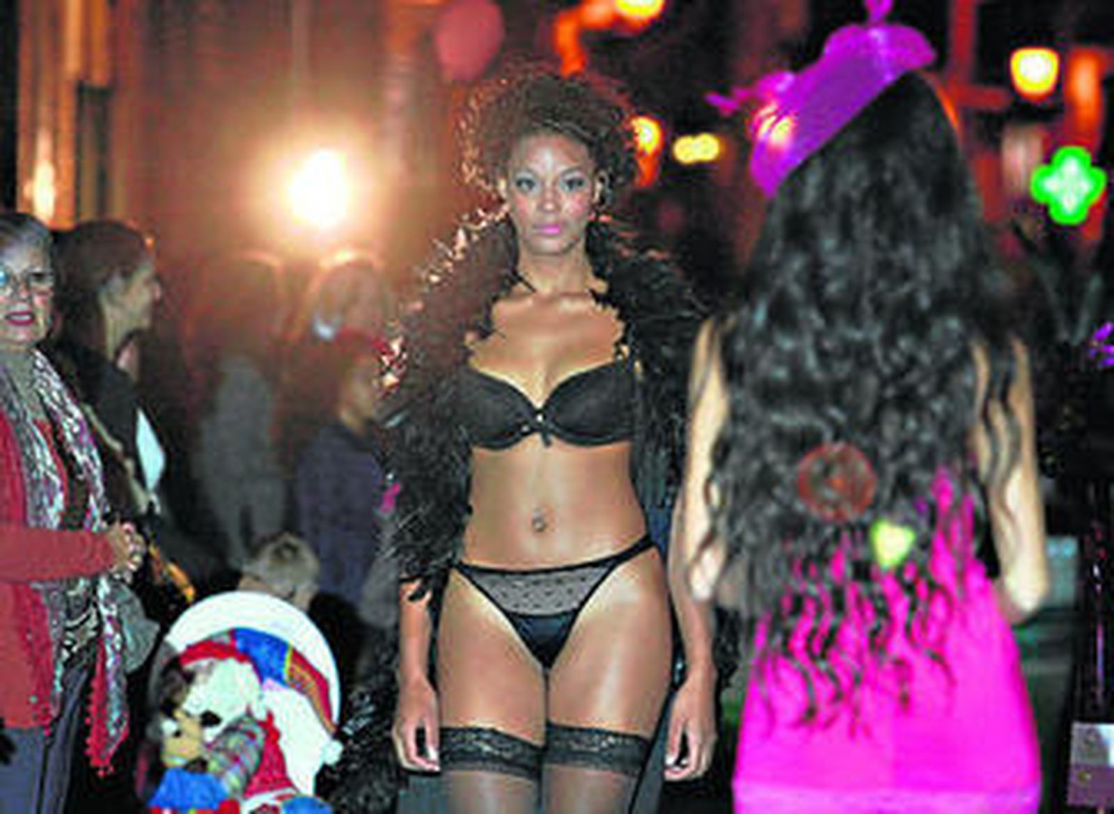 El desfile comenzó con una selección de prendas de Teresa, un establecimiento que lleva más de cuatro décadas en activo. Las modelos lucieron conjuntos de lencería de una y dos piezas en blanco, negro y fucsia, adornados con boas, tocados en el pelo, y ramos de flores; juveniles pijamas de alegres coloridos y sensuales camisones.