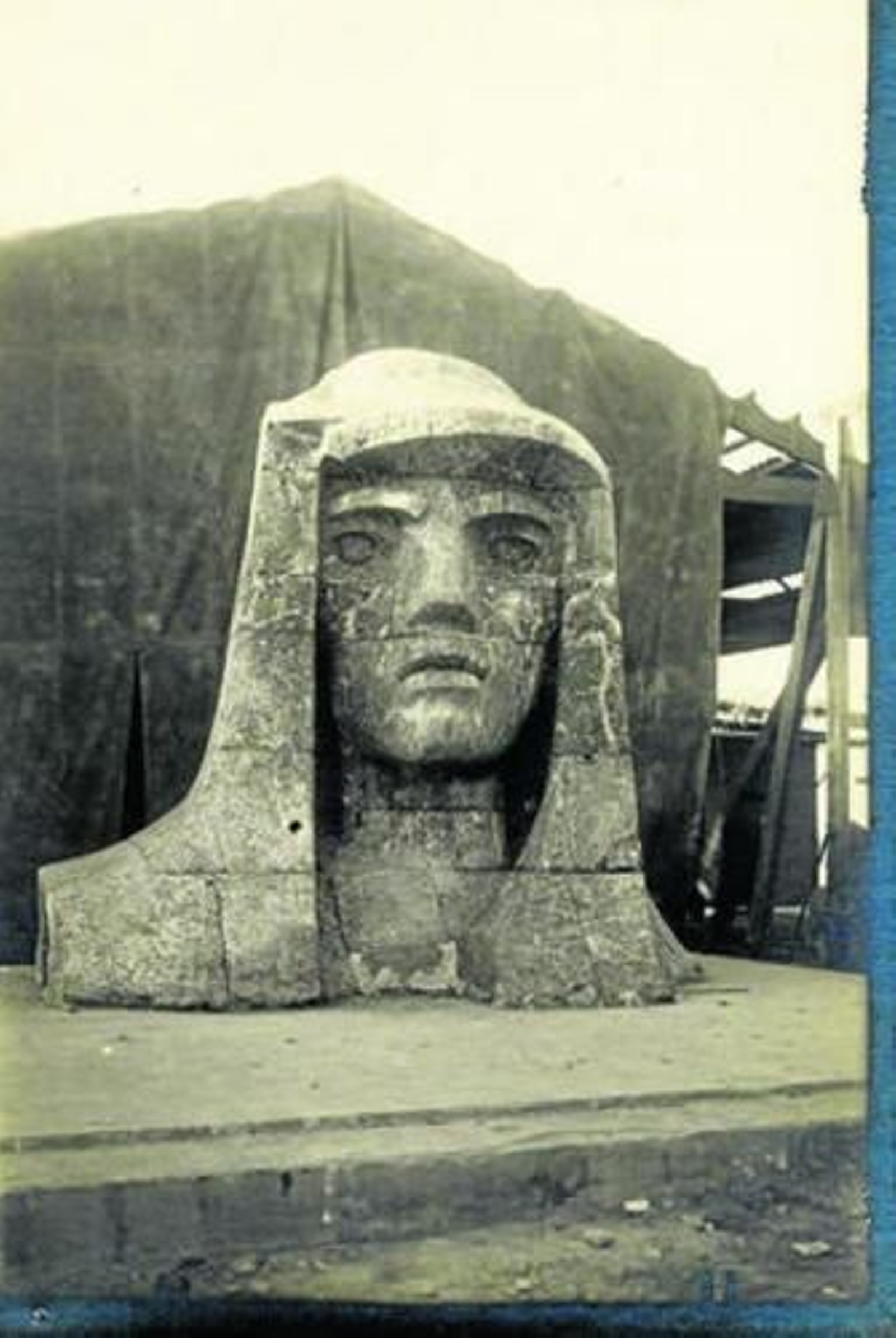 n Impactante imagen del busto antes de ser incorporado a la obra, que fue supervisada en tierra por Florence J. McAuliffe.
