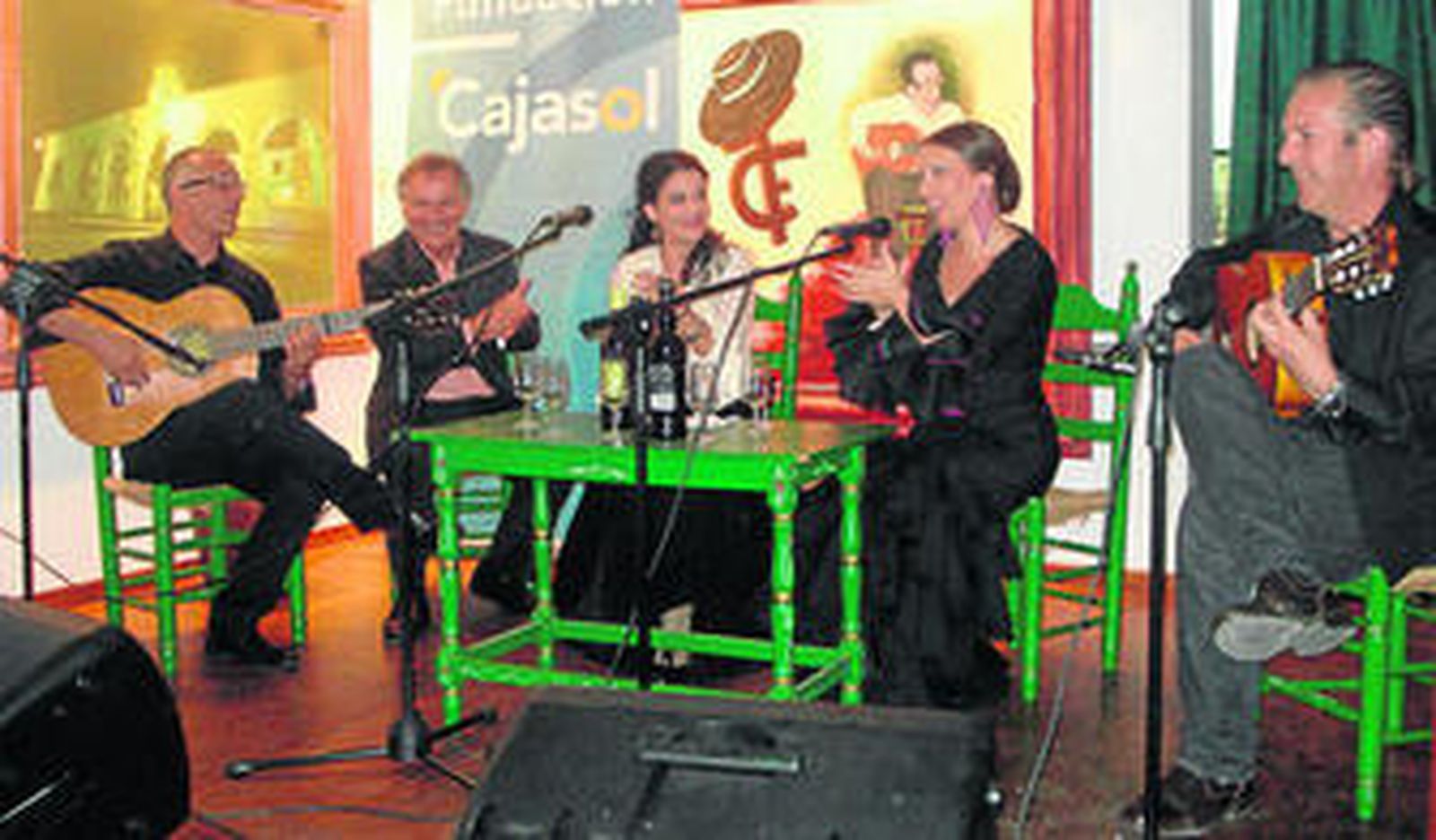 Corresponden las voces a las cantaoras Virginia Gómez y Rocío Vázquez, con el magistral acompañamiento de las guitarras de Gaspar de Holanda y José Manuel Domínguez, disfrutando de una velada inolvidable, que hicieron detener el reloj de los tiempos en la veterana y flamenquísima Tertulia del barrio de Las Colonias.