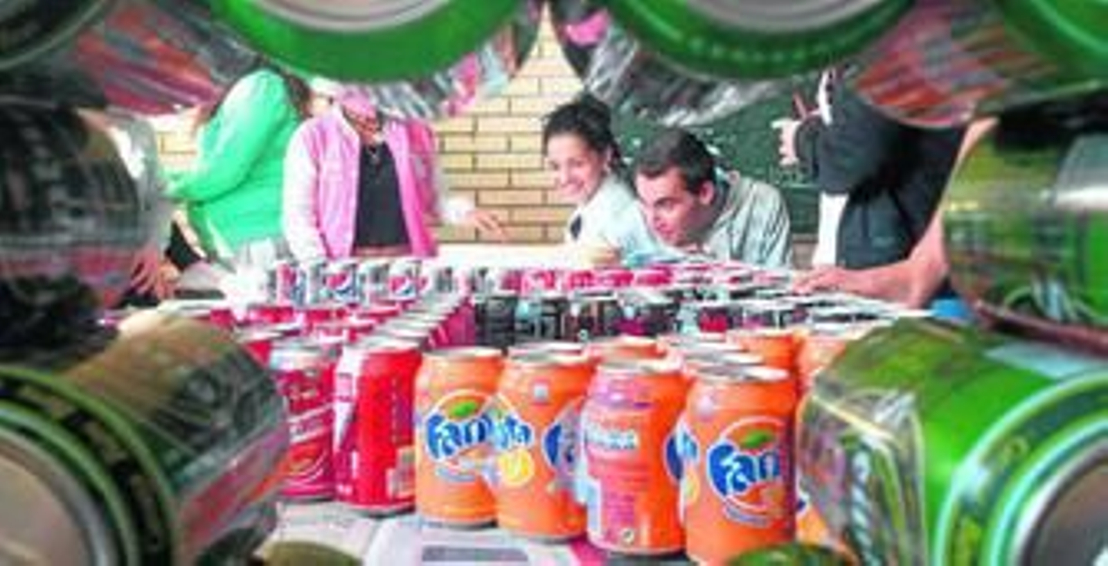 La iniciativa surgió en el departamento de Matemáticas del instituto el pasado mes de diciembre y se pusieron manos a la obra. El objetivo era realizar lo que se denomina en matemáticas un fractal, en este caso, el triángulo de Sierpinski, con latas de refresco y de cervezas vacías pegadas entre sí formando una estructura básica triangular de tres latas, pegando posteriormente entre sí tres de estas estructuras formando un triángulo mayor de nueve latas, y así sucesivamente, multiplicando siempre por tres el número anterior, formando triángulos cada vez mayores, hasta llegar a la estructura final.