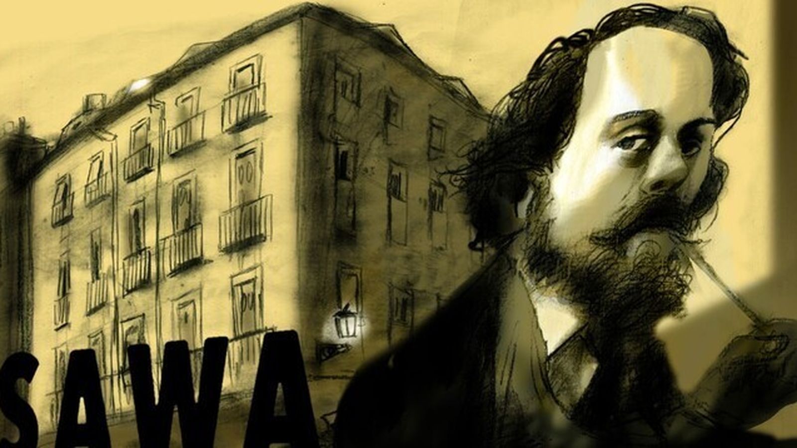 La casa en la que murió Sawa es un edificio sencillo, de cuatro pisos más las bohemias buhardillas, con planta baja de granito guadarrameño, gris y sólido, que hace esquina con la travesía que lleva al vecino Palacio de Liria. Tiene un aire madrileño de la época, entre dieciochesco y decimonónico, lo que habla de su antigüedad; sus balcones dan a la calle Conde Duque y las ventanas a su travesía, frente al cuartel que fue de los Guardias de Corps. Es una casa en la que jamás estuve, aunque en uno de sus pisos vivieron mis abuelos maternos y mi madre cuando era muy niña, hasta que la guerra convirtió a Argüelles en línea del frente, lo que les obligó a abandonarla, al igual que le sucedió a mi padre en el cercano paseo de Rosales. Creo que entonces la mujer de Sawa, Jeanette Poirier, y su hija Elena, ya no vivían en la buhardilla del velatorio accidentado. Al acabar la guerra, mi familia volvió después a Conde Duque 7 a ver qué quedaba de los restos del naufragio. La impresión por el estado en que se encontraba la casa tras ser saqueada fue grande, de manera que el asunto se convirtió en leyenda familiar, pues para mi madre y mis tías aquello fue un recuerdo inolvidable.