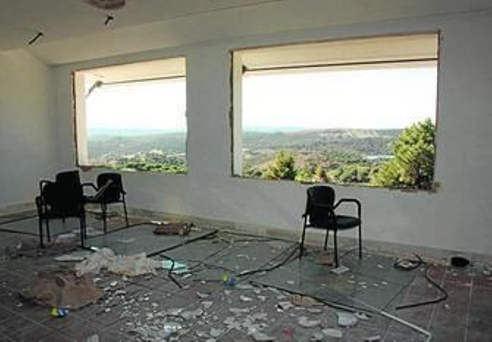 Sin duda, la ubicación del hotel, alejado del centro del pueblo y en mitad de un cerro, ha servido de acicate a los cacos y a los vándalos para campar a sus anchas por sus dependencias. Incluso han llegado a quemar algunos objetos, camas y colchones.