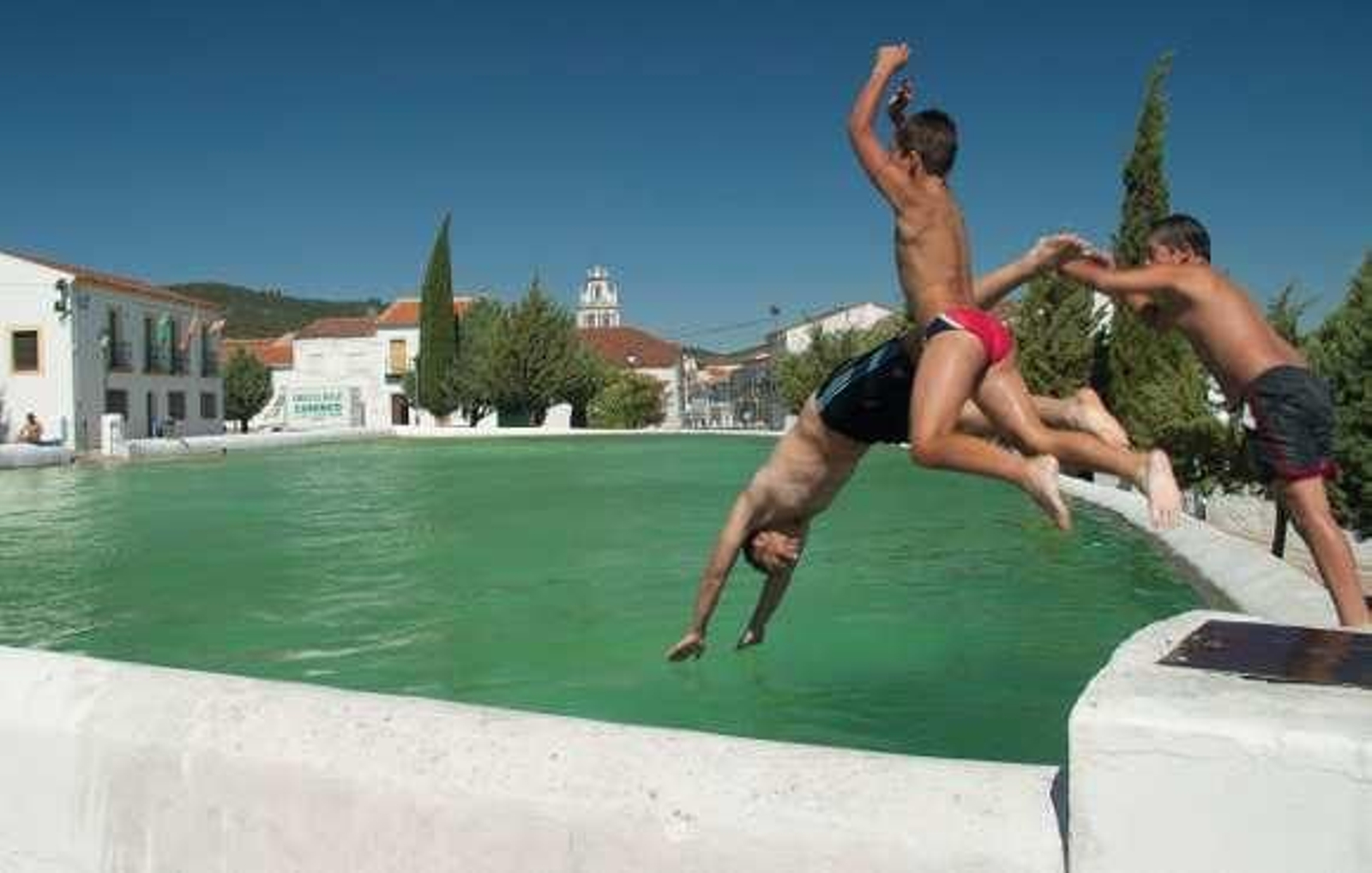 Todos los veranos este pueblo de la Sierra de Aracena instala una gran piscina de 8.000 metros cuadrados que se suministra de agua de los manantiales cercanos.