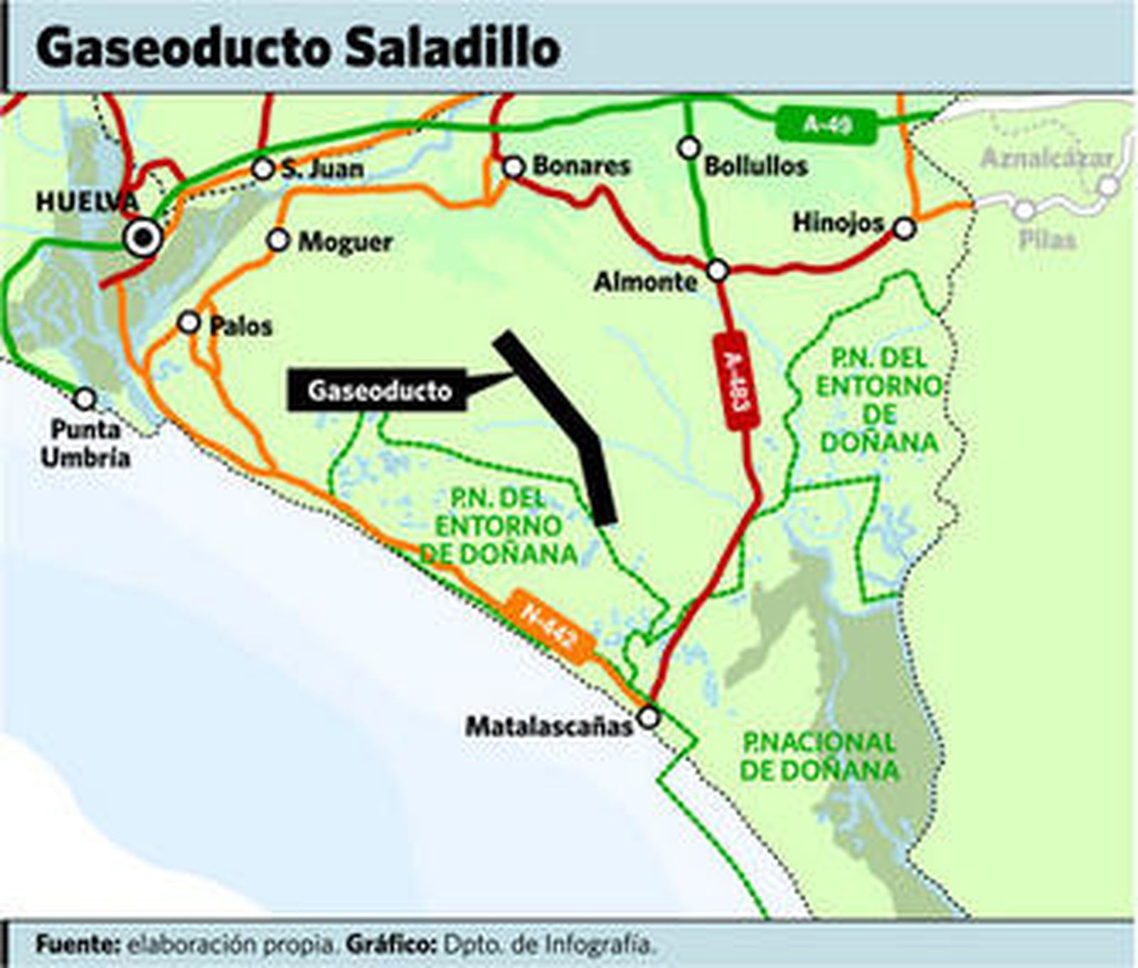 El Ministerio de Medio Ambiente y Medio Rural y Marino aprobó en su día la realización del Proyecto conjunto zona Marismas Occidental Huelva que prevé la construcción de un gasoducto en el entorno de Doñana, al entender protegido el medio ambiente. El objeto del proyecto, que ejecuta Petroleum Oil & Gas España, S.A., es la adecuación y desarrollo de los emplazamientos gasíferos que conforman la zona de Marismas Occidental para el manejo adecuado y seguro de los caudales de producción de gas y posterior almacenamiento del mismo, en caso de que dicho almacenamiento resultase viable. El proyecto tiene como primer objetivo la producción de gas natural y como segundo la posterior utilización de los yacimientos como almacenamiento subterráneo de gas natural.