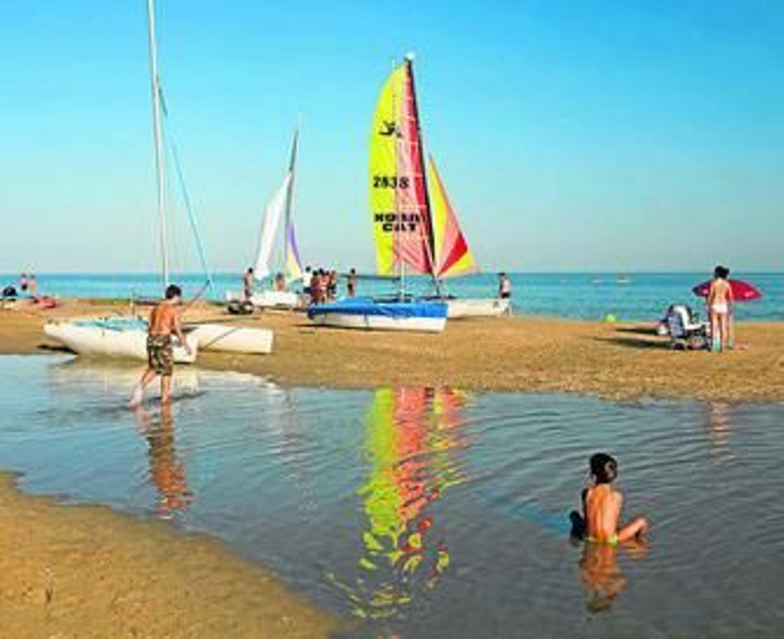 Varios bañistas en la orilla de una playa de Isla Cristina.