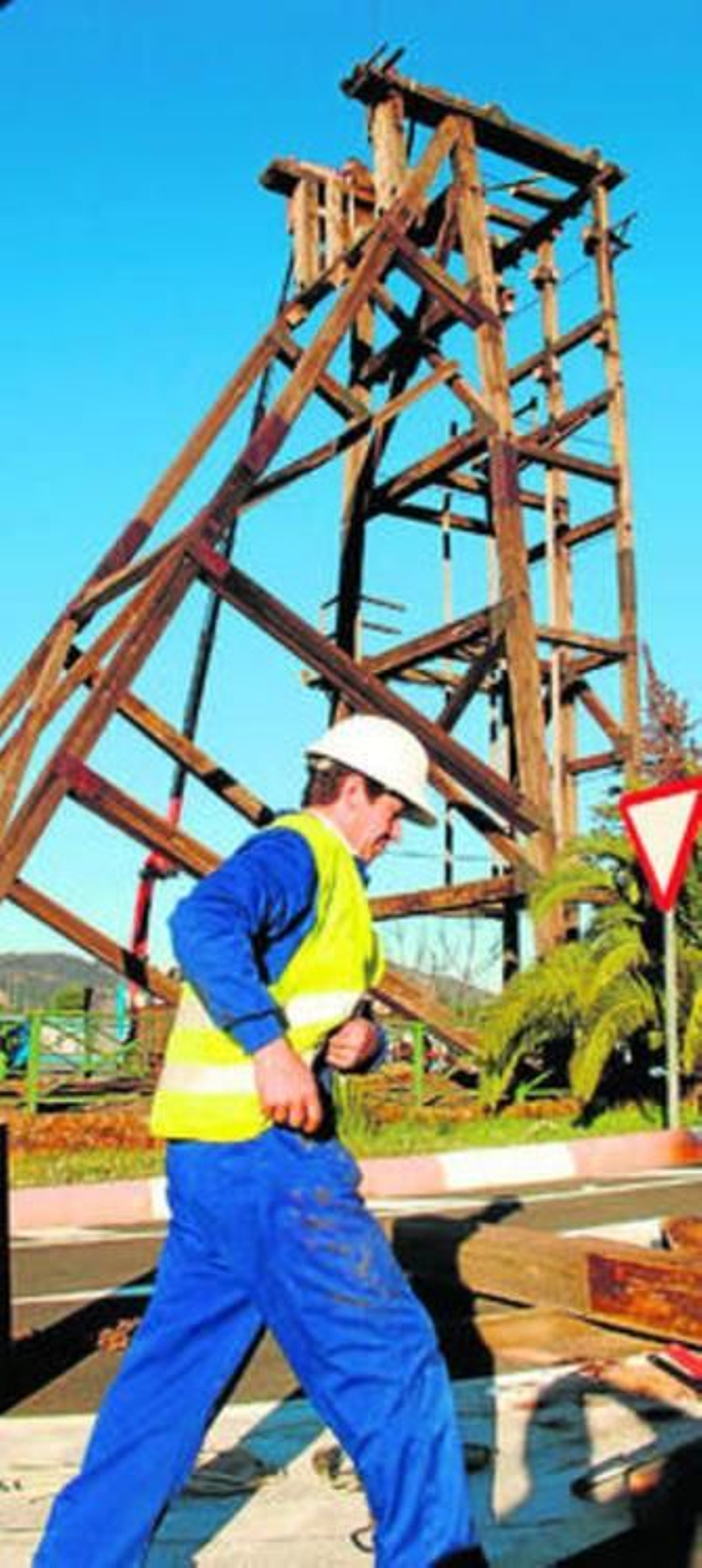 Además de producirse desprendimientos de las pasarelas y de la zona de escaleras, el malacate (construcción utilizada para bajar a los mineros a las profundidades de la tierra) presenta una fisura en la parte central de las piezas que soportan el eje de las poleas, que al ser de madera estaban aplastadas por el propio peso de las mismas y numerosos agrietamientos en la madera que estaban disminuyendo su resistencia.