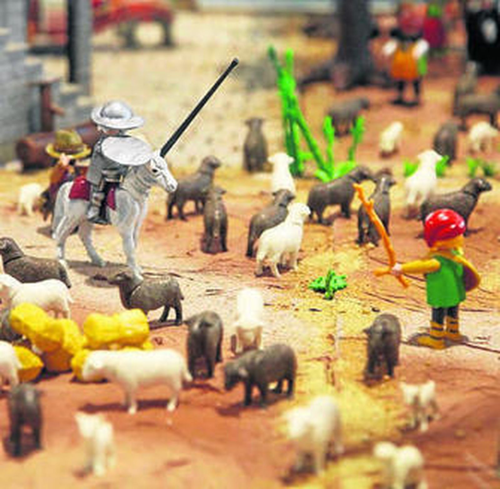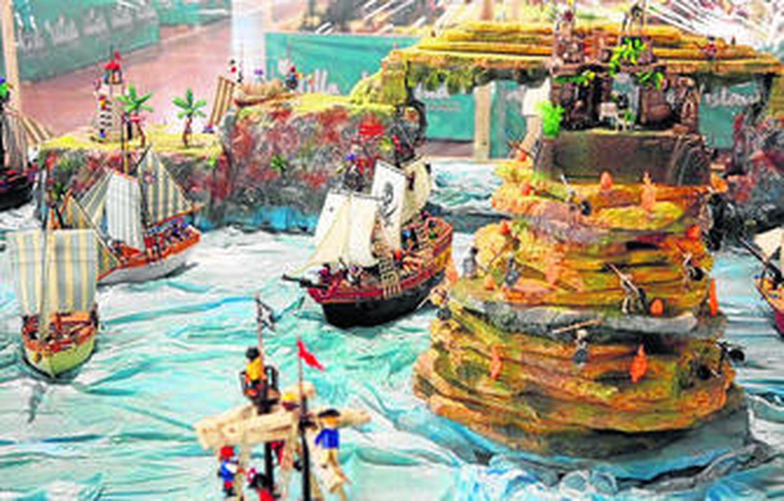 Esta de El Quijote es solo una de las curiosidades que ofrece una muestra que, por sus dimensiones, es la tercera que hasta el momento se ha instalado en Andalucía. Y es que en sus 162 metros cuadrados de zona expositiva se recogen un total de catorce dioramas (o maquetas), en los que más de 10.000 clicks de Playmobil representan desde los temas más clásicos de los conocidos muñecos, como pueden ser la Edad Media, el lejano Oeste o el mundo de los piratas, hasta otros mucho más novedosos, y hasta incluso inéditos, como el pasaje de la lucha contra los molinos de viento que El Quijote confundió con monstruos, y que los organizadores de la muestra han creado expresamente para la ocasión con motivo de la celebración del IV centenario de la muerte de Miguel de Cervantes y Saavedra.