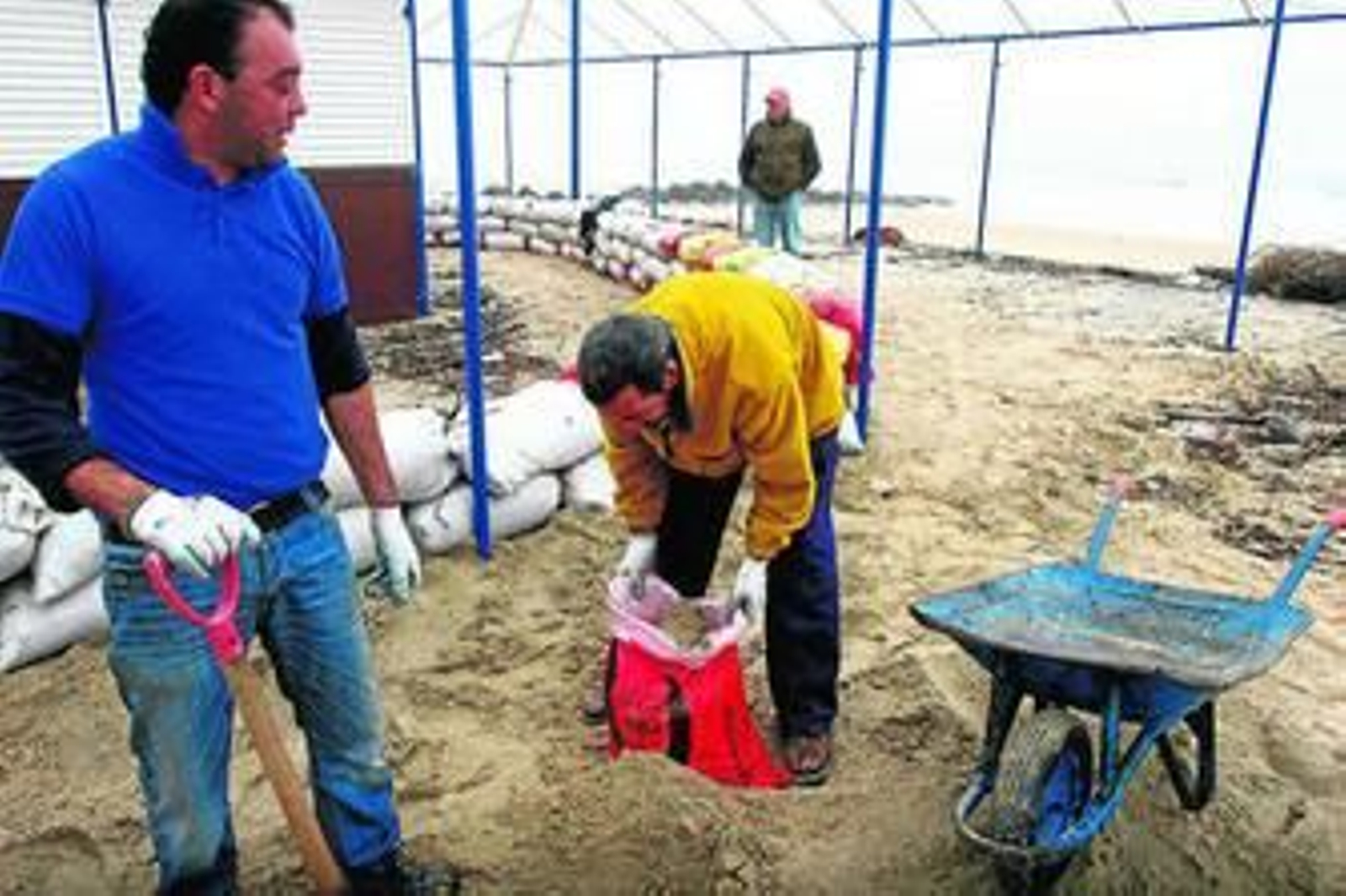 En esta ocasión, las medidas preventivas se han demostrado enormemente productivas. A mediodía de ayer los propietarios del chiringuito las Tres Carabelas se afanaban por construir un dique de contención con sacos de arena para evitar las embestidas del oleaje. Su homónimo de La Cabaña, escarmentado del pasado año cuando el mar arrancó de cuajo la infraestructura hostelera, cuyo mobiliario apareció esparcido cerca del litoral del Parque de Doñana, reforzó la estructura y optó, tras concluir la temporada estival, por desmantelar la terraza y mantener únicamente la cocina. En esta ocasión no ha habido que lamentar daños personales, según fuentes de la Benemérita consultadas por este periódico.